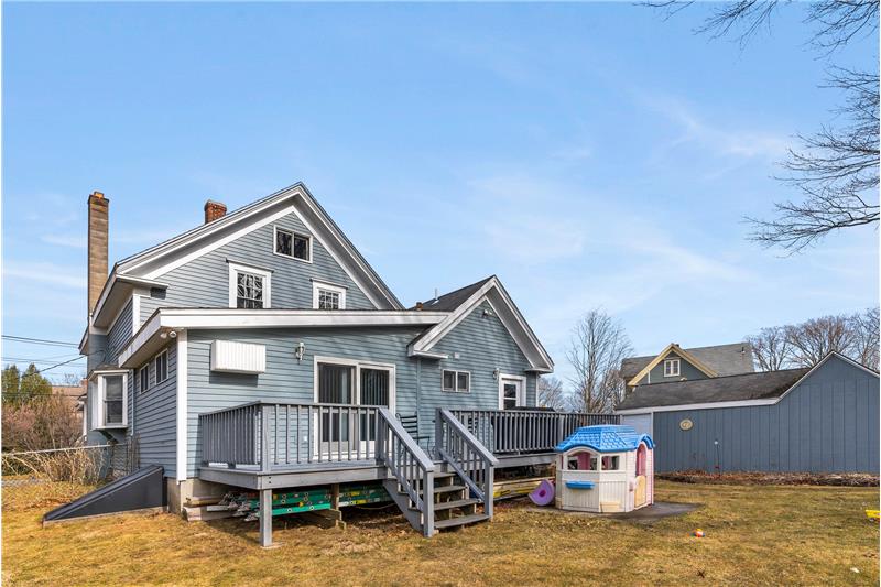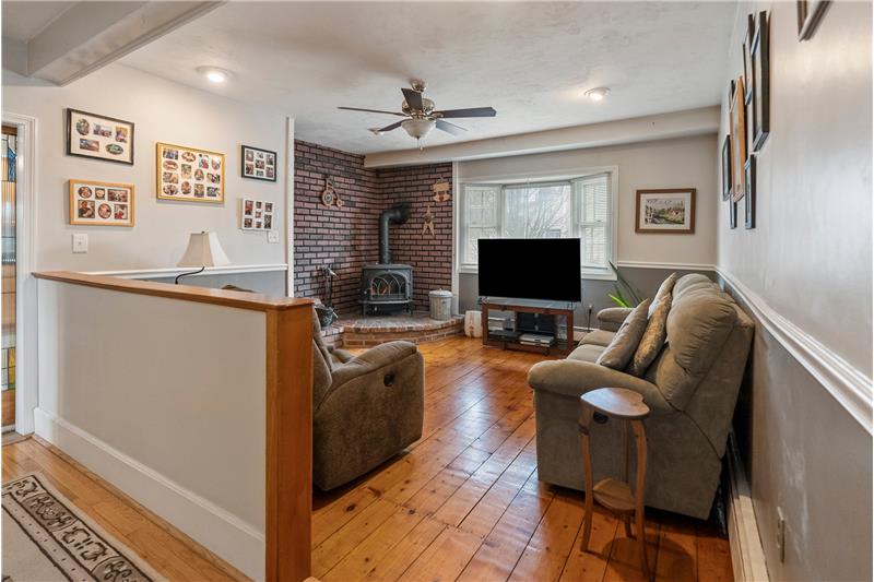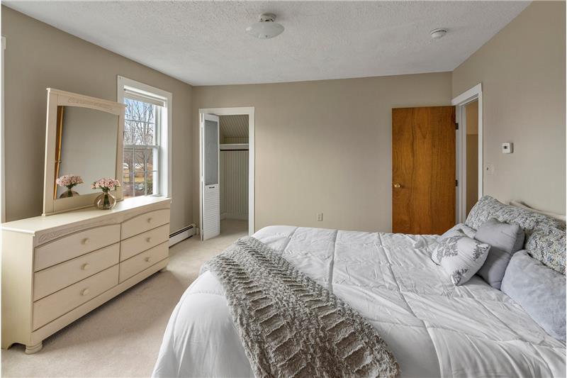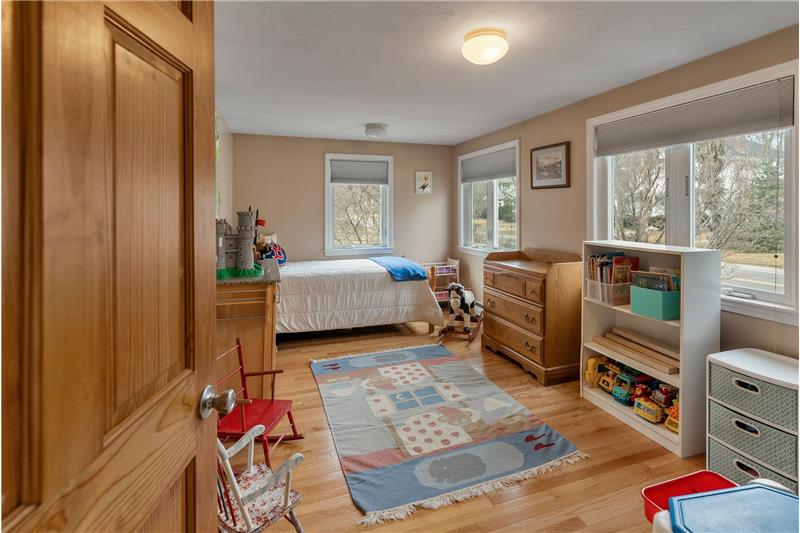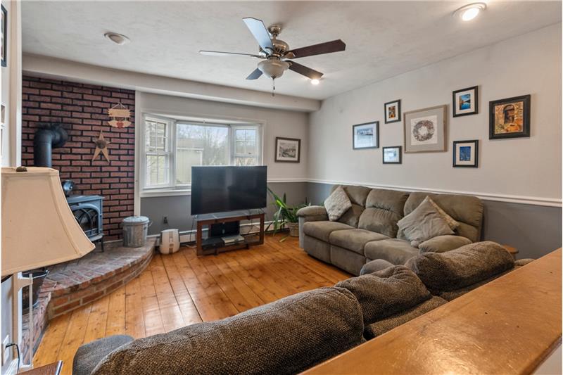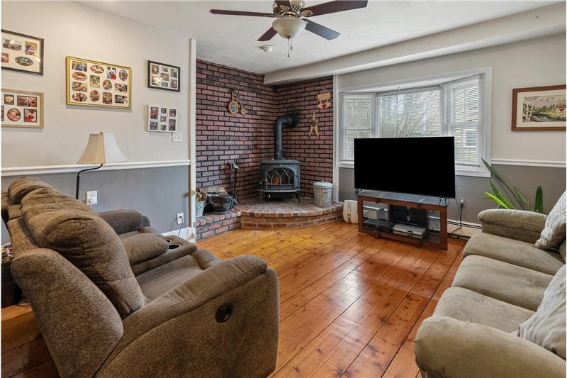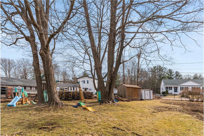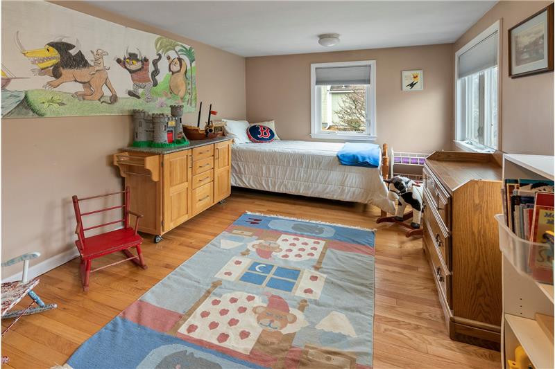 Expanded New England colonial is ready for new owners. The traditional floor plan has been improved to add a ground-floor primary bedroom plus a second bedroom ( currently used as a playroom). The central living room has wide plank pine floors and a cozy wood-burning stove in the heart of the home. The updated kitchen has granite countertops and stainless steel appliances. A second primary suite is available on the second floor with two walk-in closets and an ensuite bathroom with a shower stall. The rest of this level has been opened up to make one large room, again with two closets.New rugs