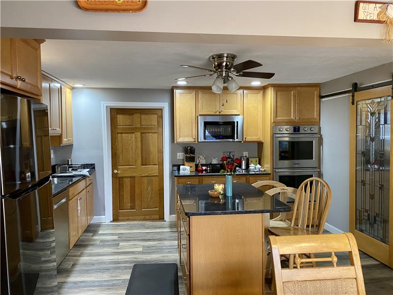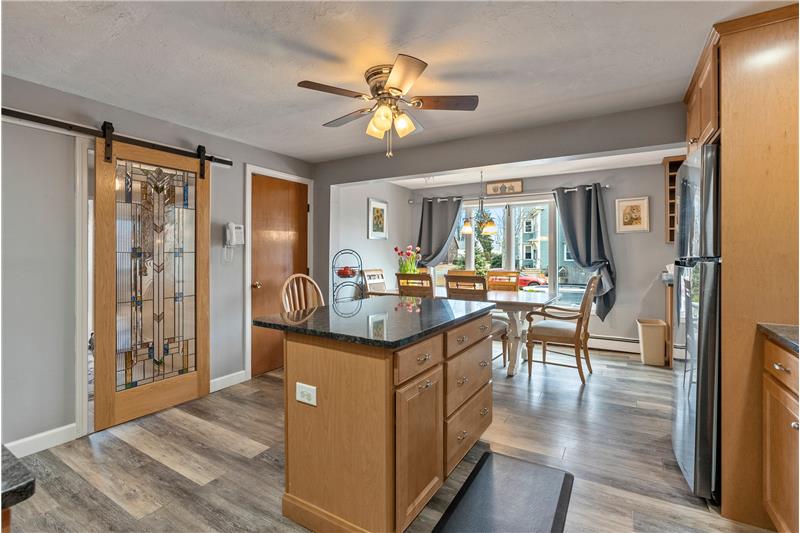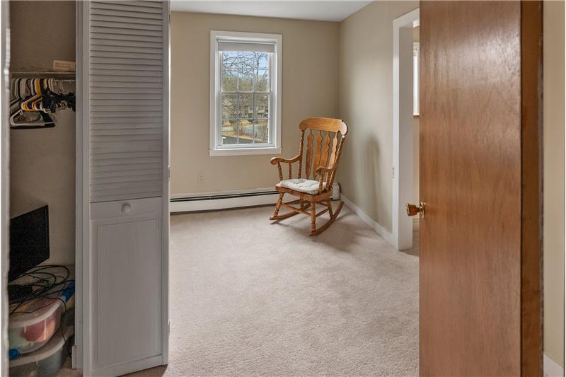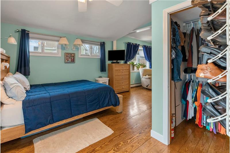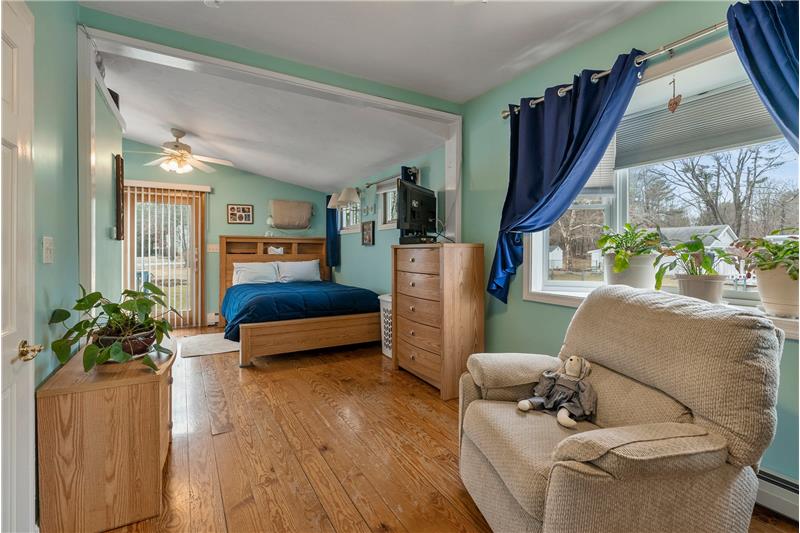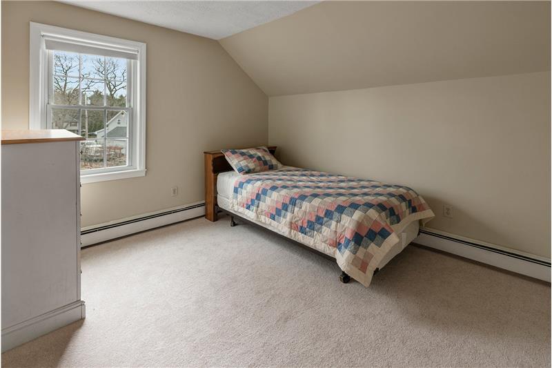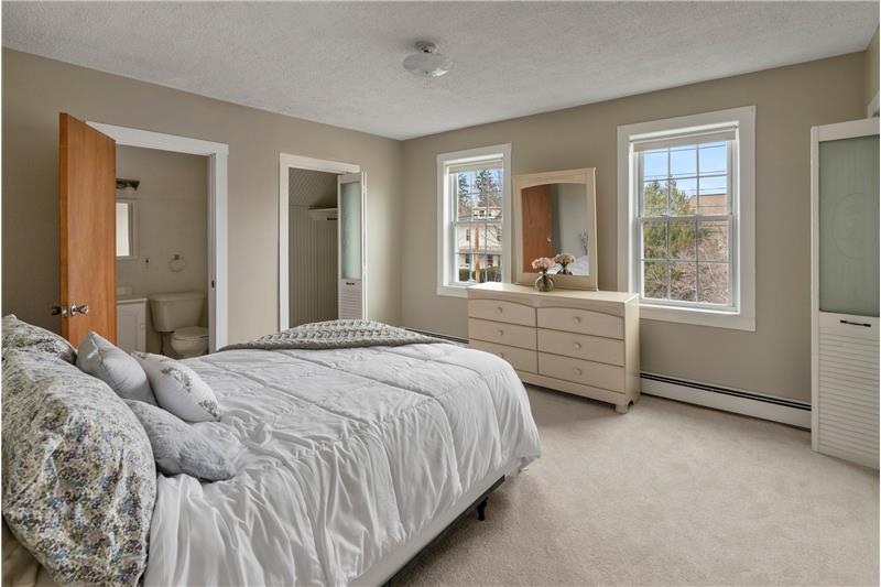 Expanded New England colonial is ready for new owners. The traditional floor plan has been improved to add a ground-floor primary bedroom plus a second bedroom ( currently used as a playroom). The central living room has wide plank pine floors and a cozy wood-burning stove in the heart of the home. The updated kitchen has granite countertops and stainless steel appliances. A second primary suite is available on the second floor with two walk-in closets and an ensuite bathroom with a shower stall. The rest of this level has been opened up to make one large room, again with two closets.New rugs