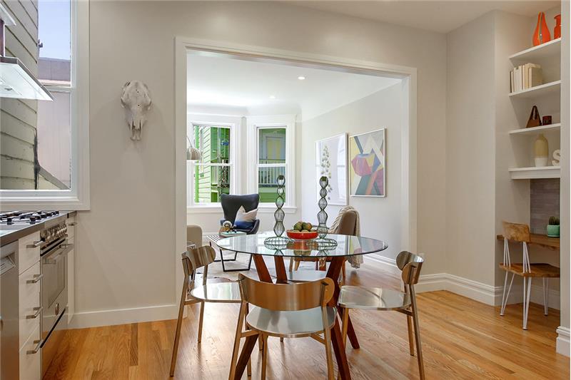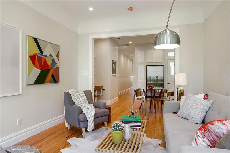 152 San Carlos is a top floor TIC Flat located in a 4 unit Edwardian building on a quaint street in the heart of the Mission tucked between Valencia and Mission Streets. Unit 152 is a 2 bed/1 bath and boasts extensive upgrades, Sleek Euro design kitchen with high end appliances and opens to a bright light filled living space and has a bonus den/office room. This fresh unit has newly refinished hardwood floors, in-unit laundry, double pane windows and large bright bedrooms and a large storage space in basement. This location is the epicenter of cool with great cafes/restaurants/bars nearby.