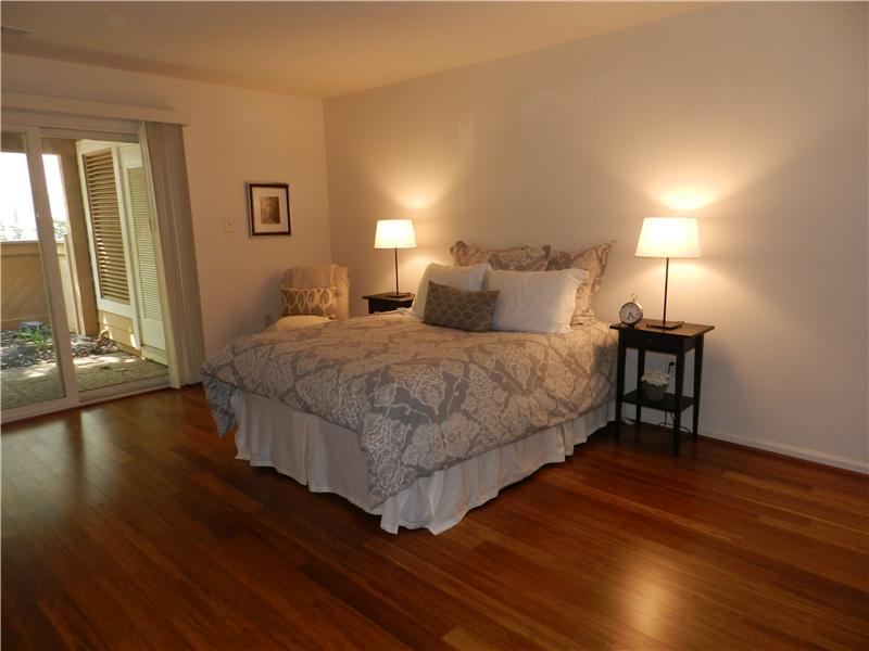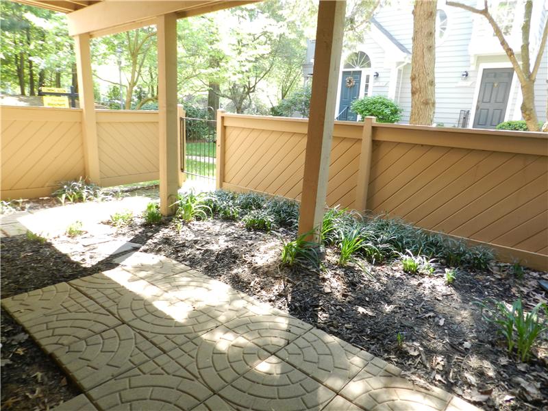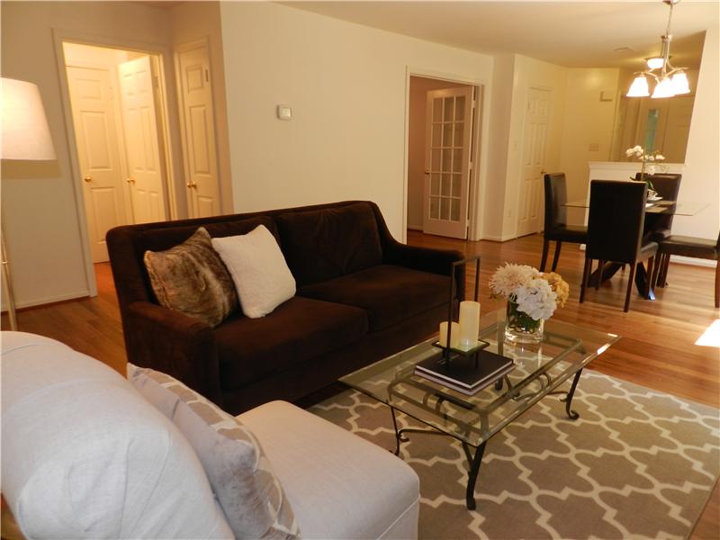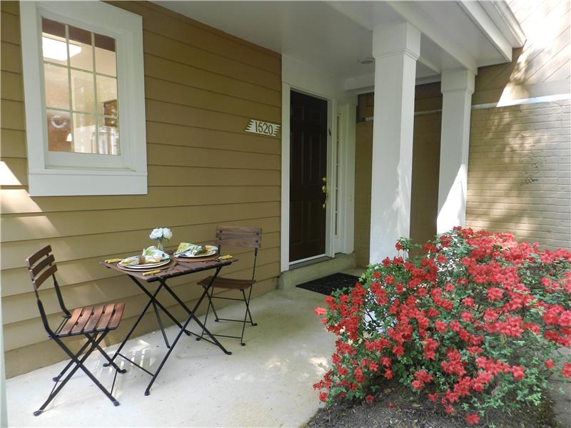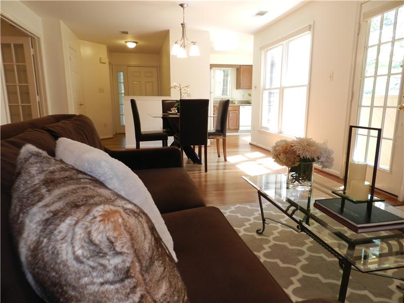 Beautifully maintained condo in sought after Hampton Pointe. One level living with private entry. Master BR with private bath and large walk-in closet. Additional bedroom/office features french doors. Granite counter tops, bamboo flooring, newer HVAC, refrigerator, microwave oven and replaced polybutylene pipes. Walk to North Point shopping center, pools and tennis courts.