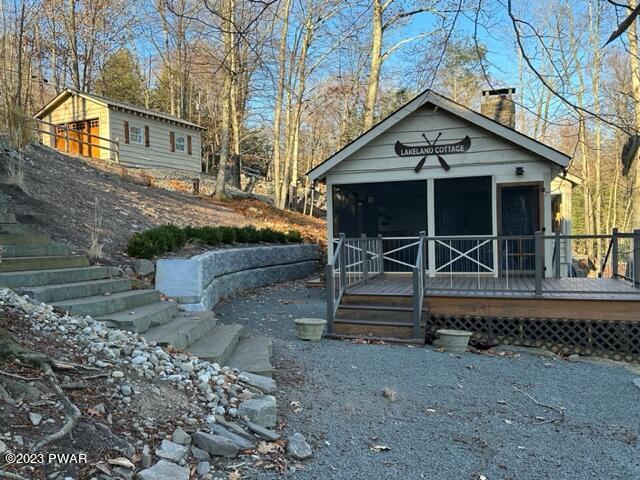 The “Old Time Lake Experience” you have been looking for is here waiting for you in this fully furnished and charming cottage. Totally and tastefully redone, all floors restored, new kitchen backsplash, new lighting throughout, new deck connected to new enclosed porch with Mahogany decking, new roof, outdoor shower, new garage, granite steps from driveway to house. Driveway and parking pad accommodate up to 6 vehicles. Dock on Lake Wallenpaupack is included in the sale with large platform. Short Term Rental friendly.