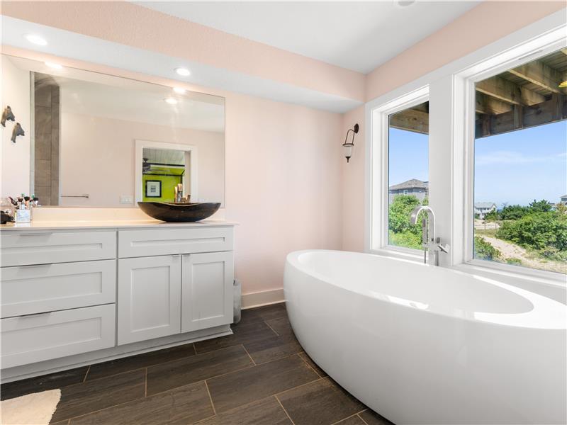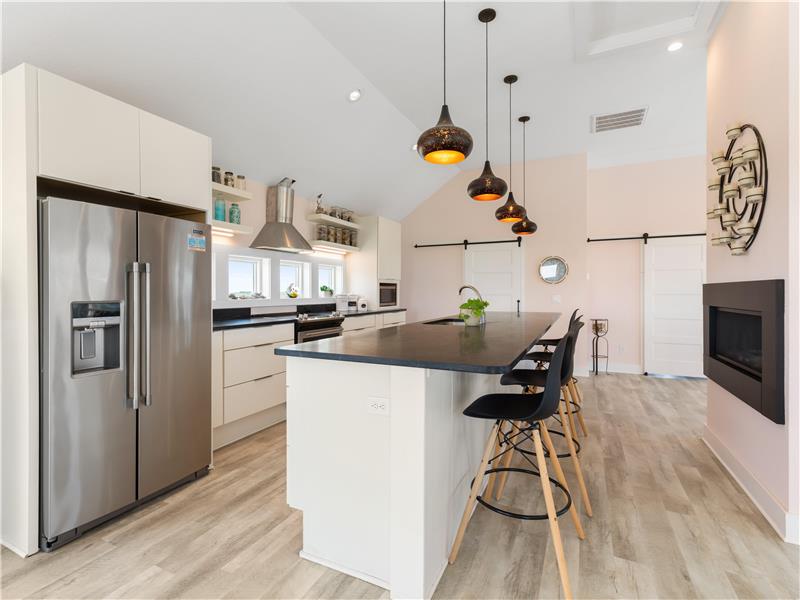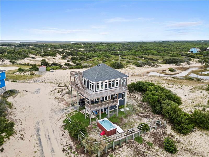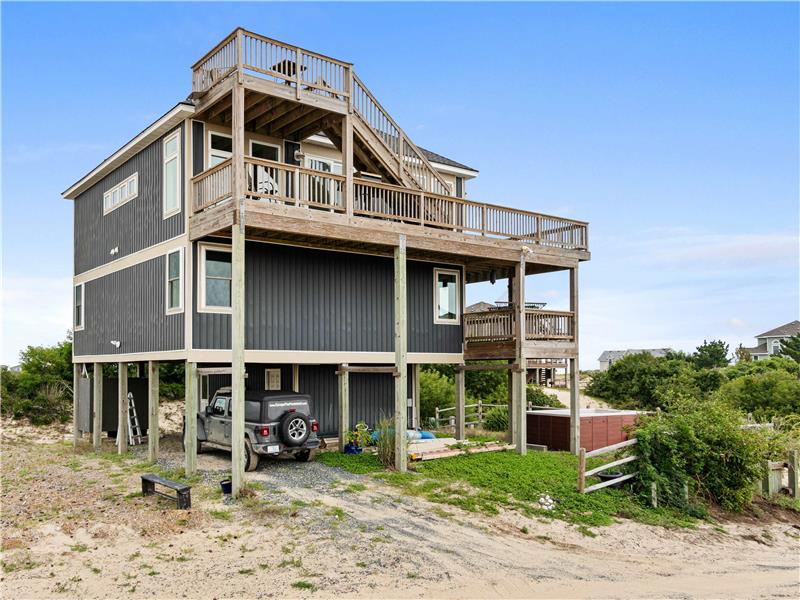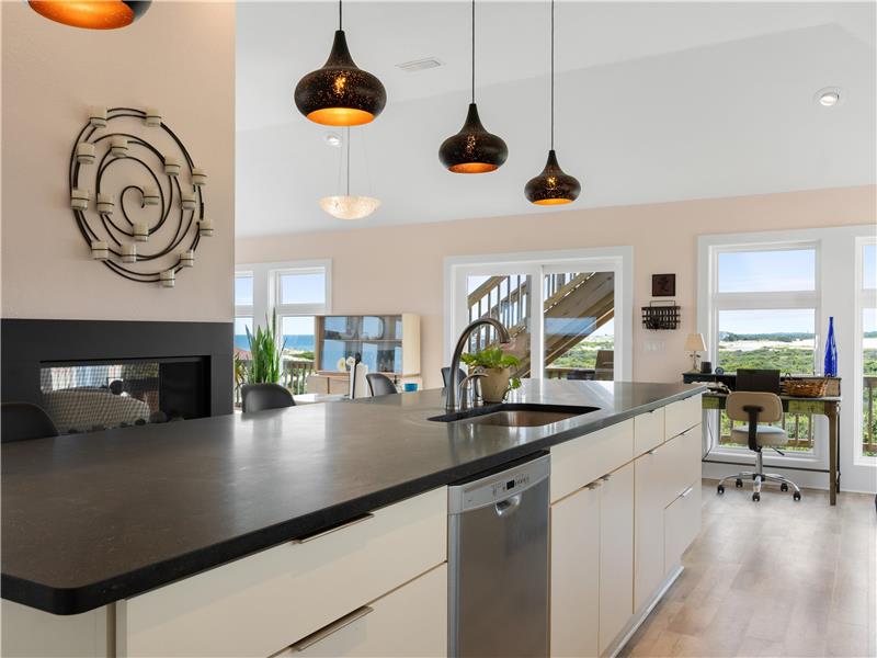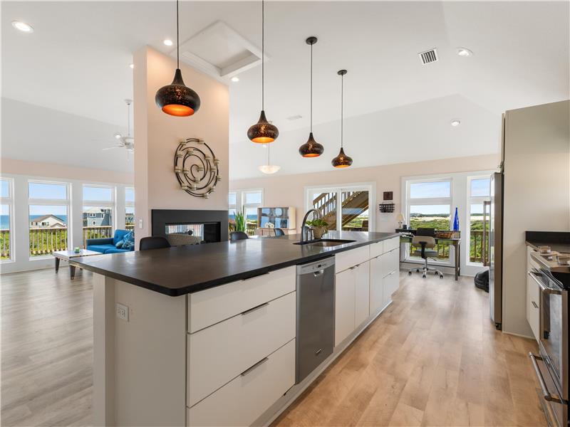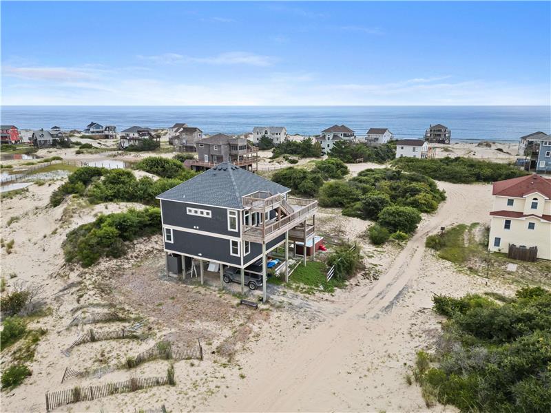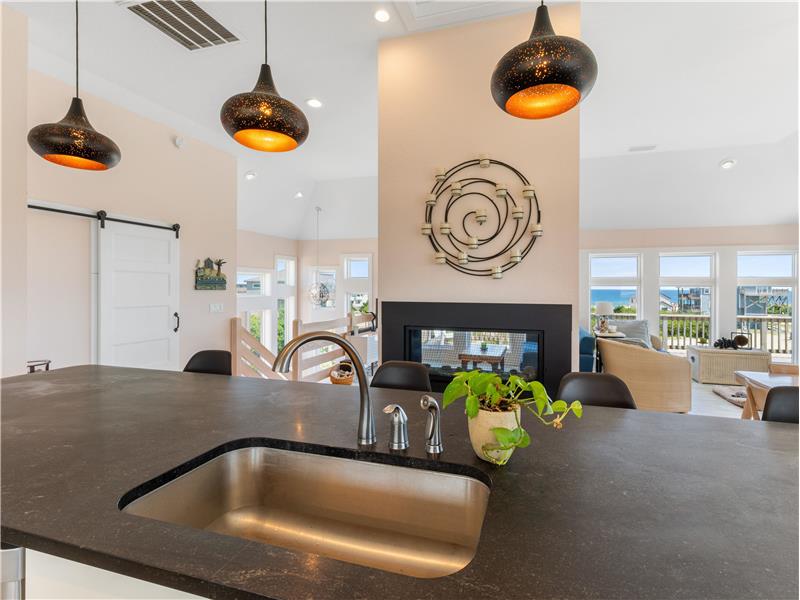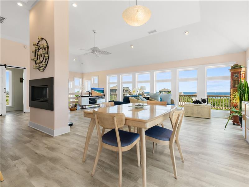 Experience the ultimate coastal lifestyle in this custom-built, never-rented home located in the Seagull subdivision of Carova. This 3-bedroom, 2.5-bathroom gem sits on an oversized lot measuring over half an acre with great elevation. The spacious great room features a see-through gas fireplace at its center, perfect for cozy gatherings. The large kitchen island is ideal for meal prep and entertaining, with stunning ocean views from almost every room and sound views from the kitchen windows. Fear not.