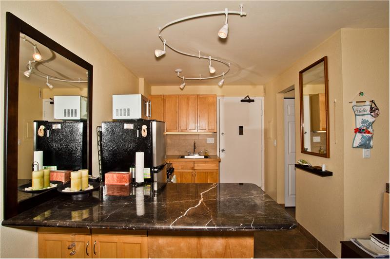 Furnished and entirely remodeled studio maximizing space for the comforts of urban living. Enjoy panoramic city & mountain views on the preferred & rarely available side of bldg. Features wide-sliding windows, granite counters, tile & laminate flooring . Kapiolani Terrace offers secured access, pedestrian friendly neighborhood with short distances to Ala Moana Shopping Center, Don Quijote, Walmart and many more.