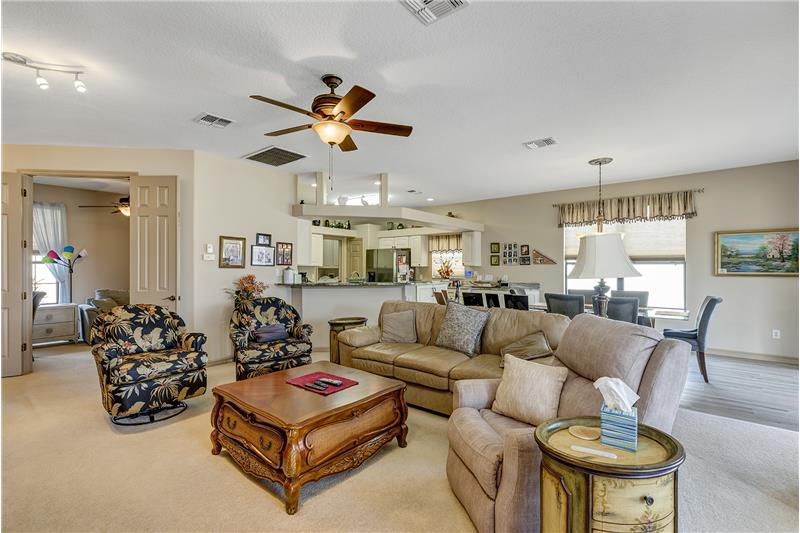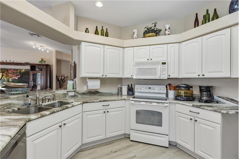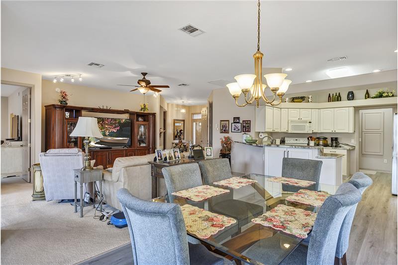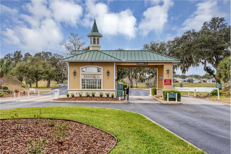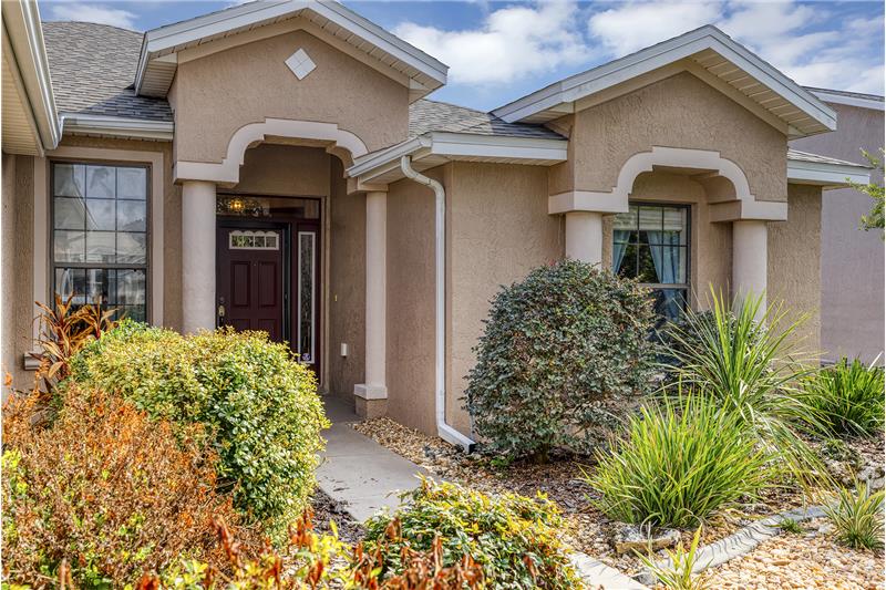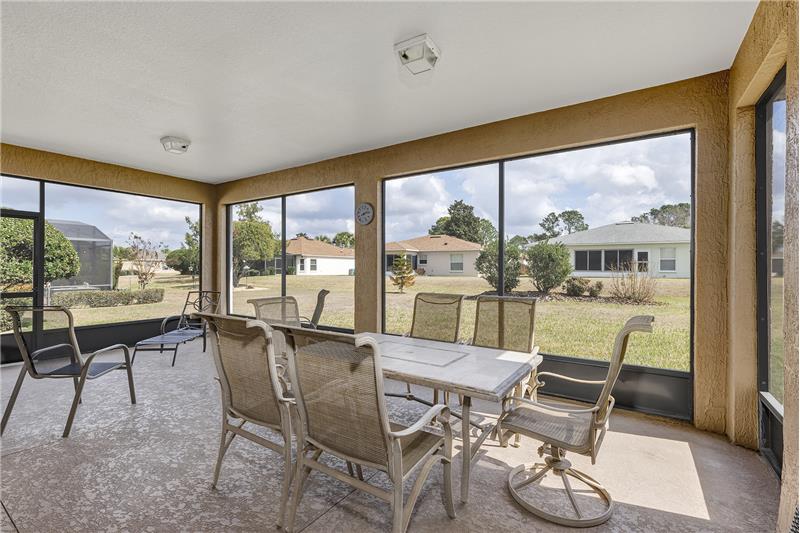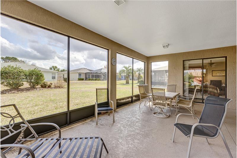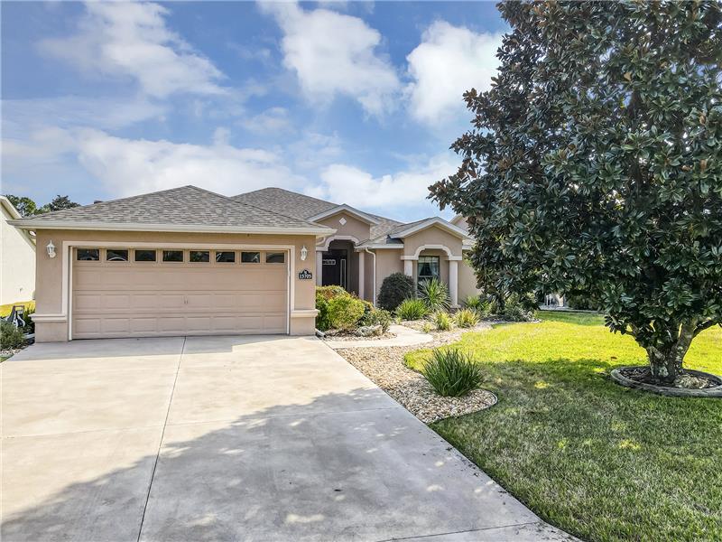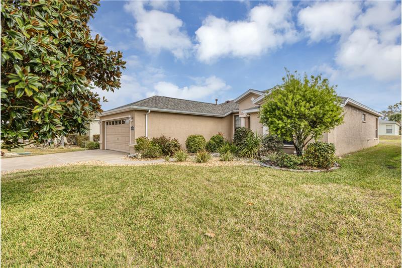 This home is a lovely Saint Augustine model with a few custom features. It has two bedrooms and a den, kitchen, dining room and great room with an open floor plan, and inside laundry room and a large lanai. The kitchen features stainless steel appliances and granite countertops which were added last year as well as a large sink and a snack bar. The dining room also has sliding glass doors leading to the large, screened lanai. The bedrooms are split plan. There are too many community amenities to list including an 18-hole championship golf course! Call to see this move in ready home today!