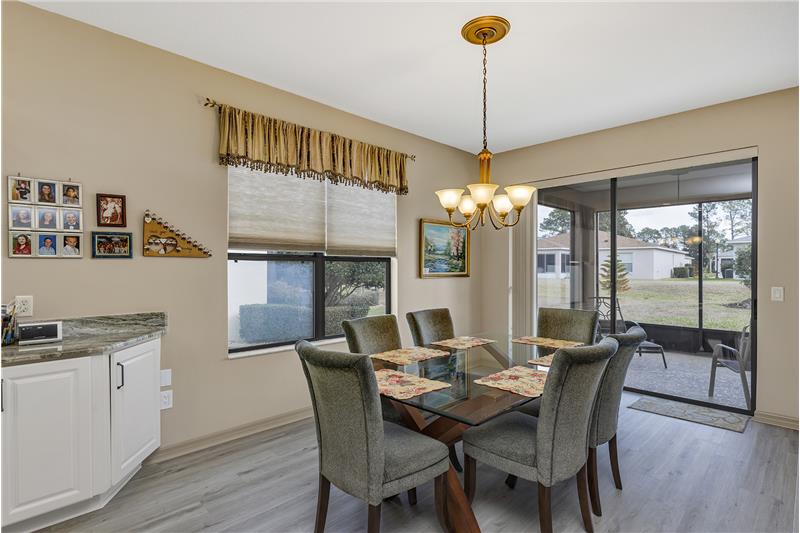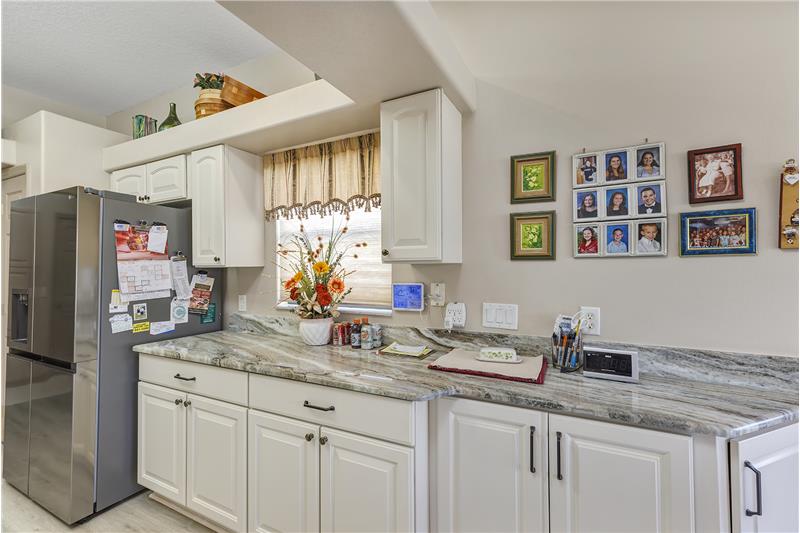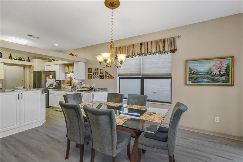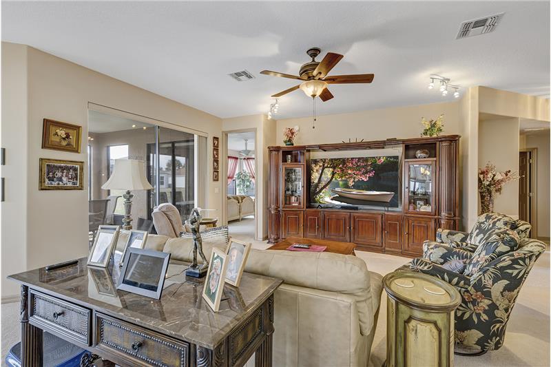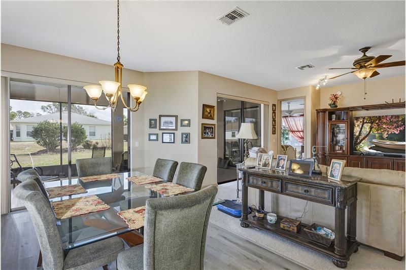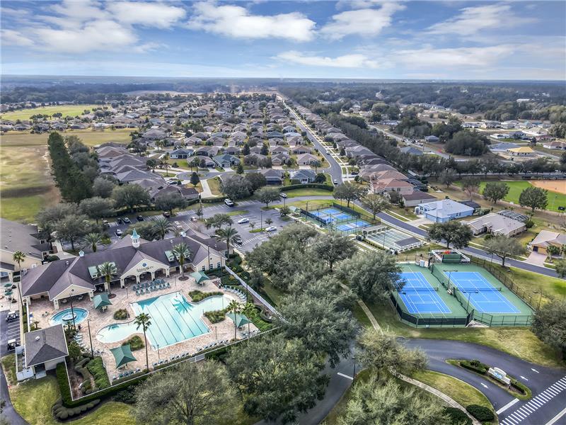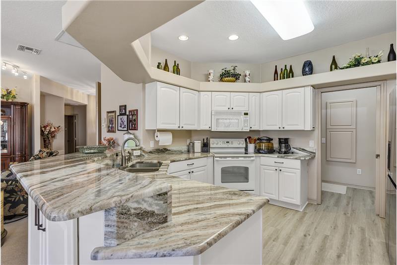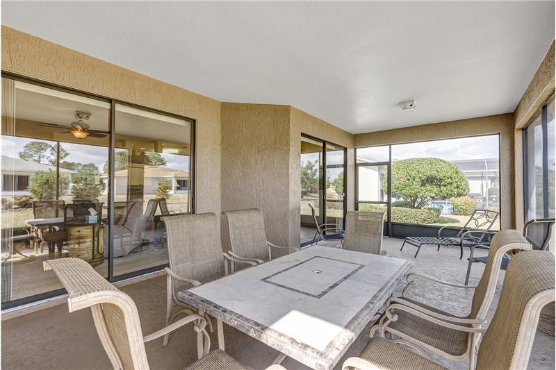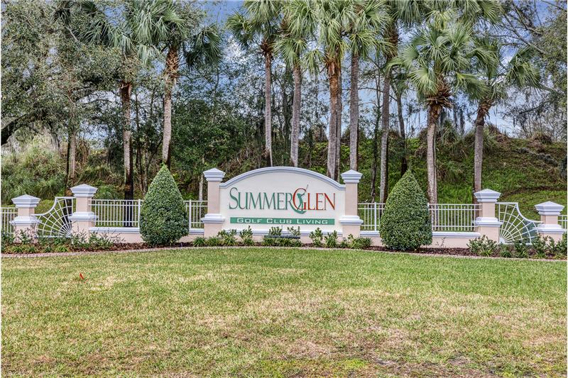 This home is a lovely Saint Augustine model with a few custom features. It has two bedrooms and a den, kitchen, dining room and great room with an open floor plan, and inside laundry room and a large lanai. The kitchen features stainless steel appliances and granite countertops which were added last year as well as a large sink and a snack bar. The dining room also has sliding glass doors leading to the large, screened lanai. The bedrooms are split plan. There are too many community amenities to list including an 18-hole championship golf course! Call to see this move in ready home today!