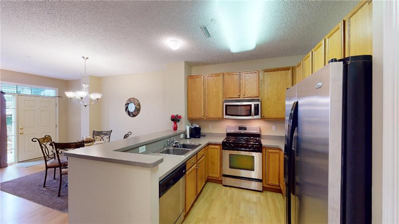 Meticulously maintained 2-story townhome in a desirable Maplewood location within the lovely Heritage Square neighborhood. Park w/playground adjacent to the building. Open concept main level. Living room is filled w/natural light. Spacious kitchen w/breakfast bar and SS appliances. Upper level features a large, en-suite BR w/vltd ceilings/private BA/walk-in closet, loft area, upper level laundry, full bath, and two additional bedrooms. Additional amenities include: covered front entry & patio, appliances included, attached/insulated 2 car garage + more. Walking/biking distance to the Bruce...