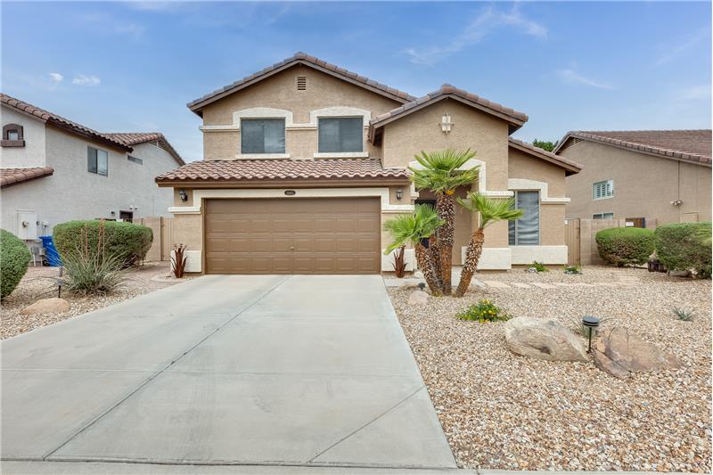 What a great home with Pool ! Bedrooms upstairs and super living space on main floor. Updates include Roof underlayment and HVAC 16.5 SEER -22', WTR heater 17', Additional roof insulation 19' Luxury vinyl flooring 24' . Irrigation lines front and back and Exterior paint 24'. Beautiful and well-cared for 3 bed/2.5 bath home located in Mountain Vista Ranch. and variable speed pool pump. Custom built-in gas grill. Large refreshing pool, or lounge under the custom covered patio. The Loop 303 is not far, and Prasada just south.