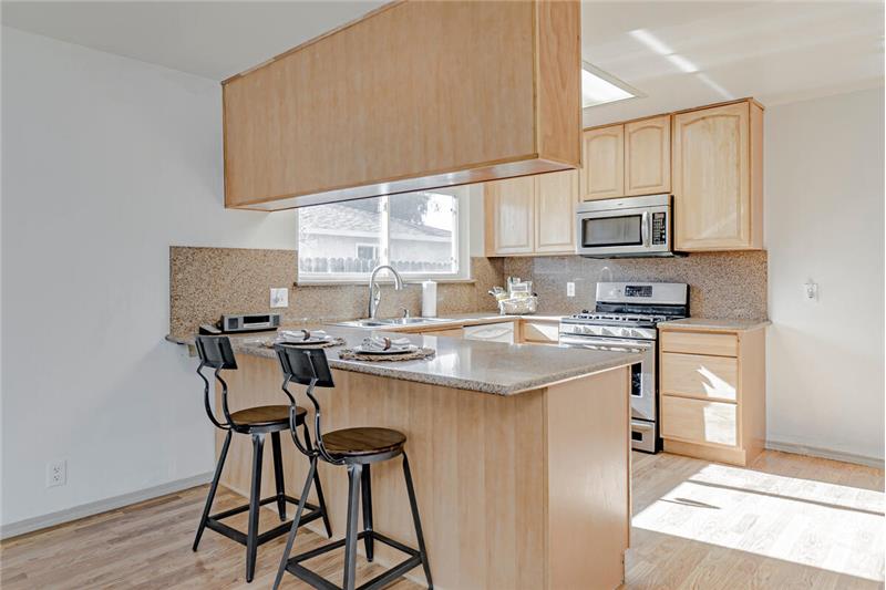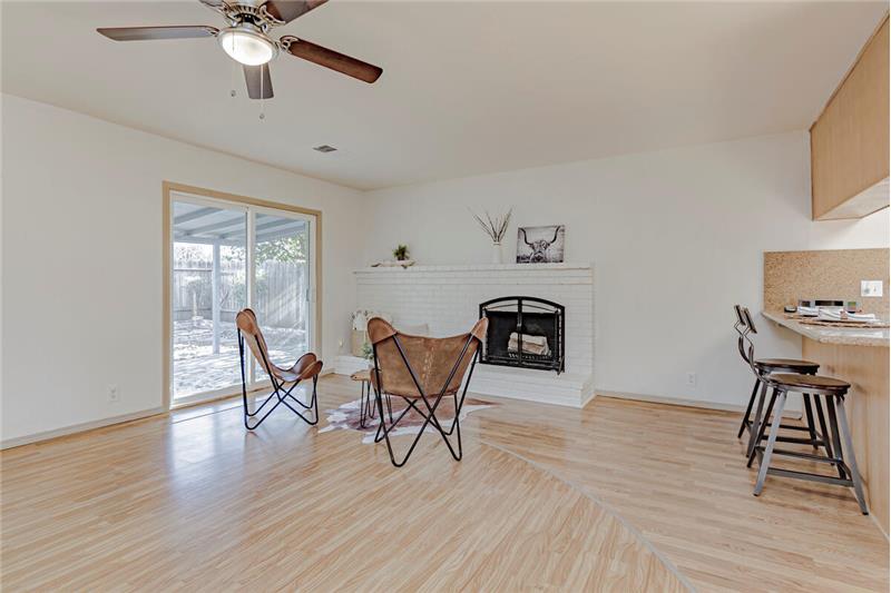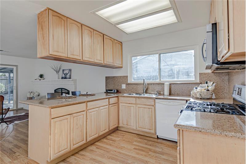 This updated home boasts a great room with a fantastic fireplace! The kitchen is equipped with a gas range, dishwasher, pantry closet, dining bar, and granite counters. Once a 4 bedroom, the owner combined two bedrooms to create a gorgeous master suite with flex area for home office/workout area/ or crafting corner. New carpet in two bedrooms, new tile flooring in bathrooms, and traditional wood laminate throughout the rest. Updated with dual pane windows, roof, and HVAC in the last decade. Acoustic ceilings are GONE- YES! PLUS, a large covered patio in back for your BBQs! Home sweet HOME!