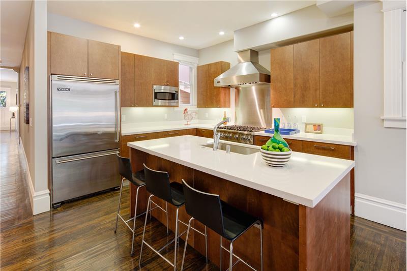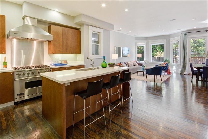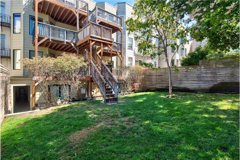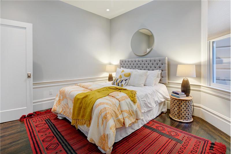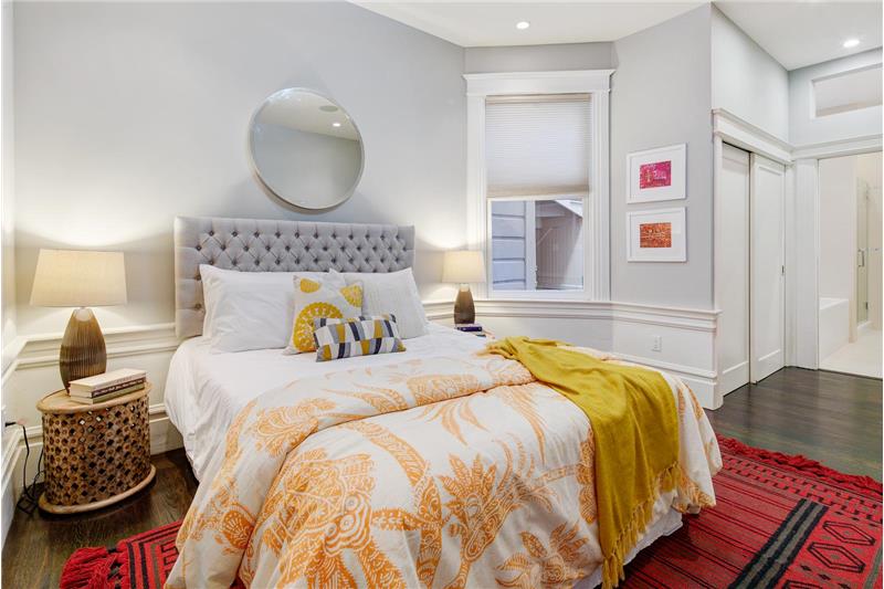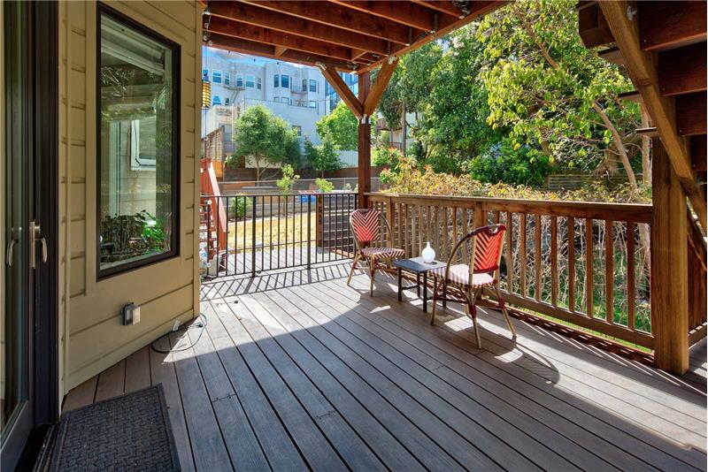Fabulous 2 bed + den Edwardian flat located in SF's most central and vibrant neighborhoods - the Nob Hill Polk street corridor. Extensively updated while maintaining its charm. The lux master has 2 large closets & en-suite bathroom with soaking tub & lux shower stall. The large open kitchen, living & dining w/ French doors to the private deck & shared backyard. The beautifully appointed kitchen has high end Viking appliances and the bonus of a wine refrigerator. The office/den off of the kitchen could also be used as a third bedroom.