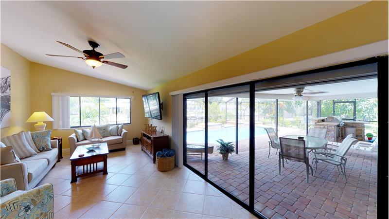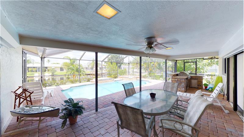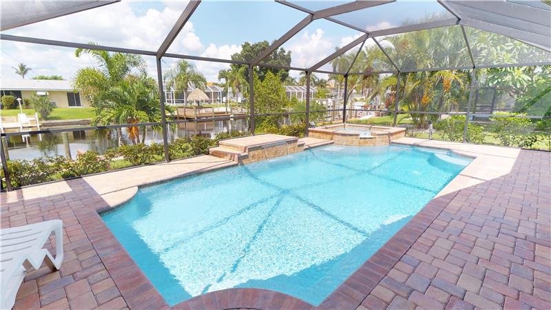 REDUCED!! SAIL BOAT ACCESS POOL HOME! Be the first to see this freshly updated, direct access. fully furnished pool home in one of Cape Corals most desirable areas! This stunning home features updated kitchen with granite and SS appliances, large family room with sliders leading to your outdoor oasis! Split bedroom floor plan, large living and dining room area. The lanai living area is perfect for entertaining WITH an outdoor kitchen and 2014 heated, salt water pool and spa, complete with heating and cooling system, therapeutic jetted spa and water fall -surrounded by paver deckinG