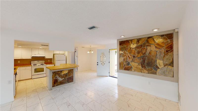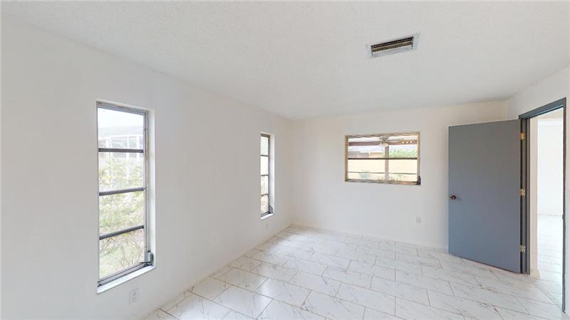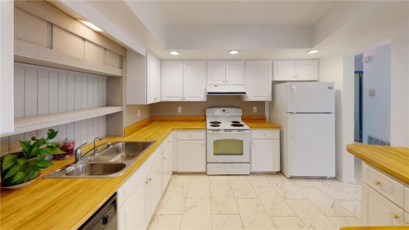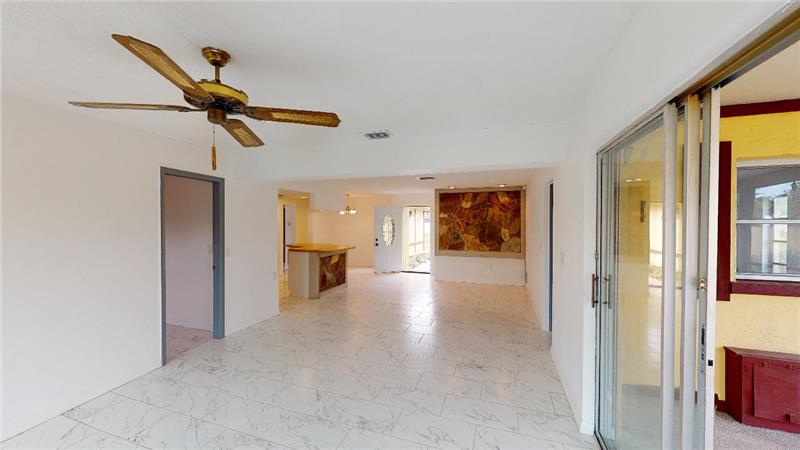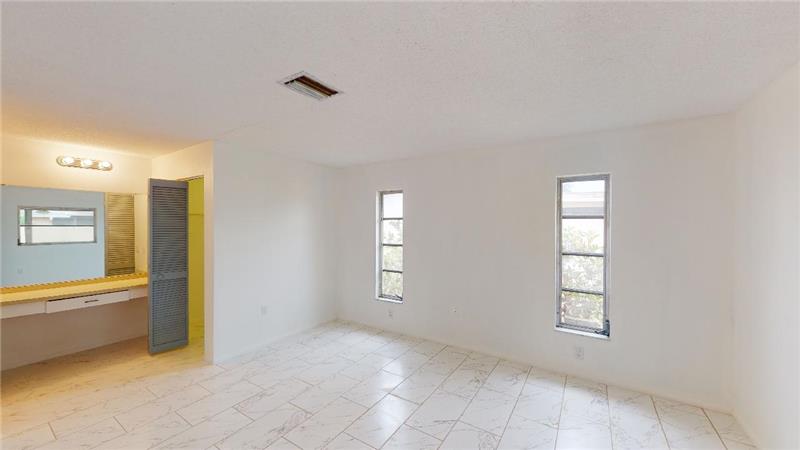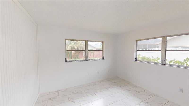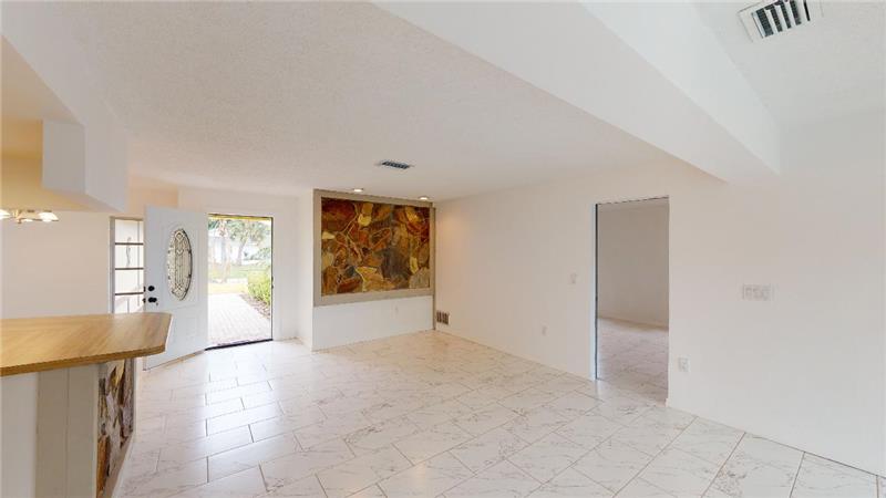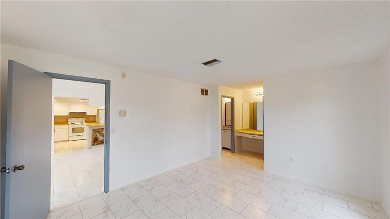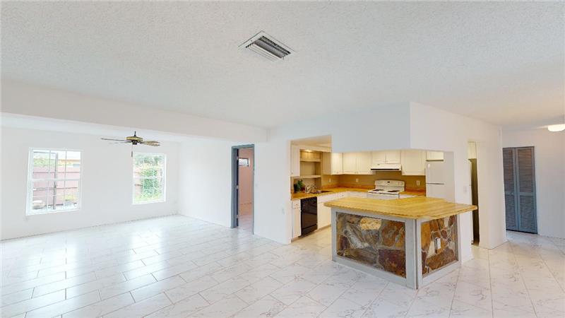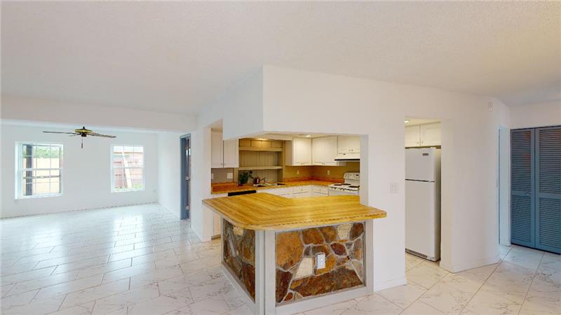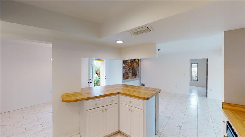 This is an AS IS sale. Owner started a few renovations, new tile throughout, frest paint, new bathroom vanity. This home has an outside deck made out of man-made planks that could be re-set on new wood. A third bedroom was added and the wall can stay as a third bedroom space or be converted back to the original large oversized living and family room. The yard is in two parts: One side is fanced and walled and has a really nice garden feeling, the other side is open and HUGE. Some new windows but the rest are original, sliding glass doors need some work too. The kitchen is open and airy, the tw