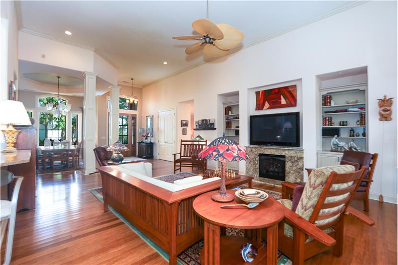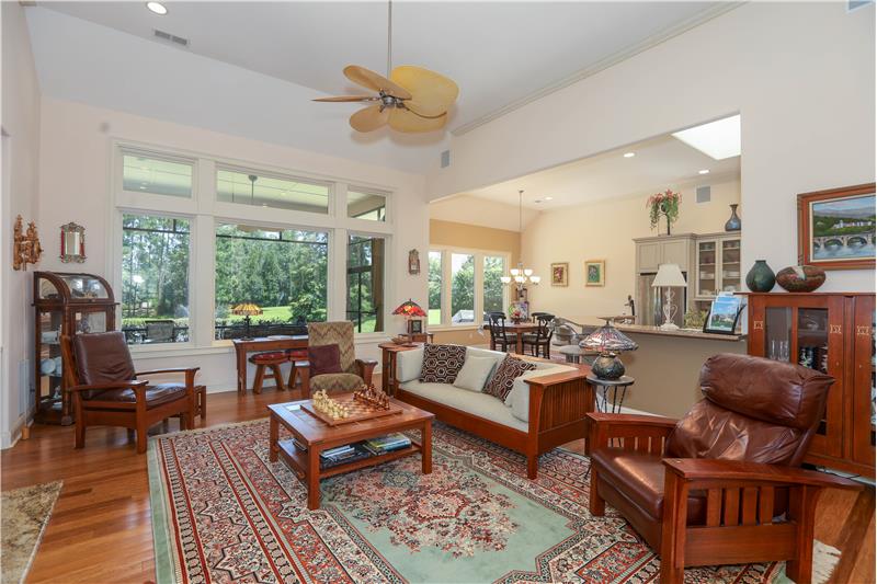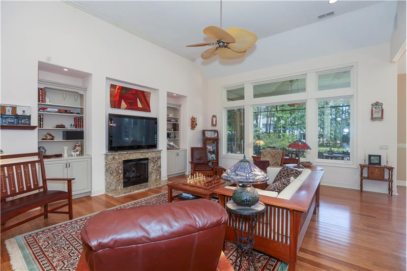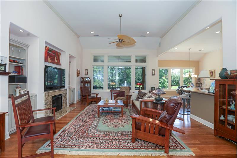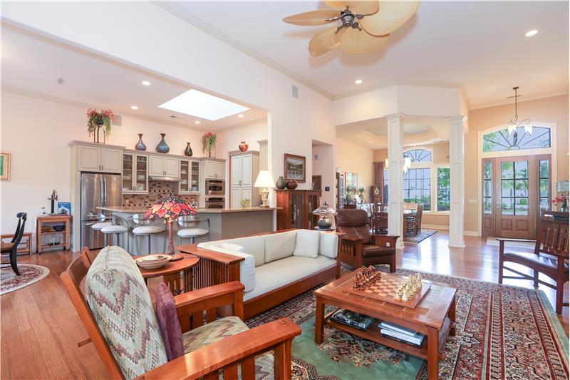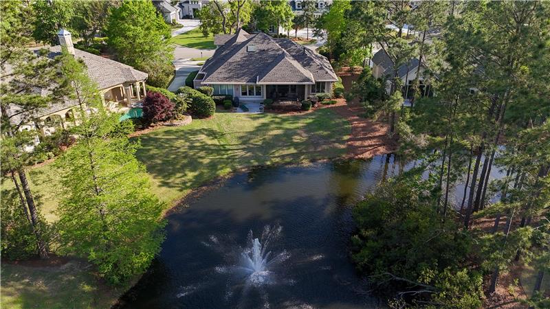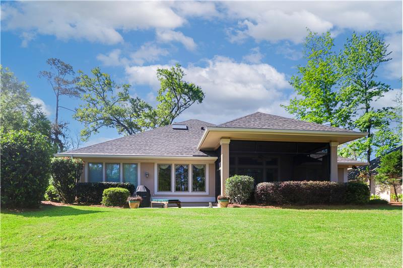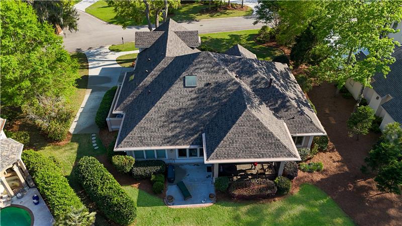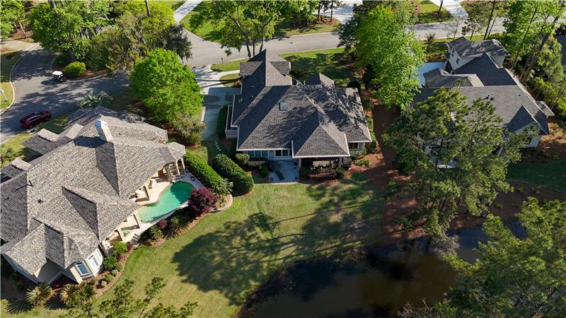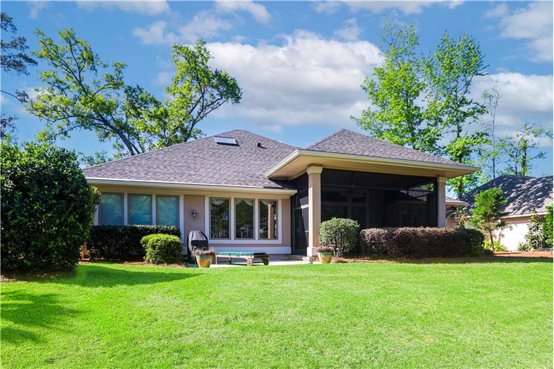Model Homes of HH CUSTOM home w/lovely views of 2 lagoon fountains in desirable Riverbend, Sun City. Fantastic upgrades in this 4-bed, 4 bath home on a superior & quiet 0.36 acre lot. 2024 roof & Carrier HVAC units. 2021 kitchen has custom cabinets w/built-ins, Silestone counters, stainless double convection ovens, skylights, & Dacor gas cooktop. Great rm. built-ins & gas FP. Updated Primary bath w/whirlpool tub, Silestone counters & 2021 walk-in tiled shower. Covered screened porch. Patio w/natural gas Weber grill. 12'-14' ceilings, 8' doors, 2"x6" Walk-in spray-foam insulated attic.