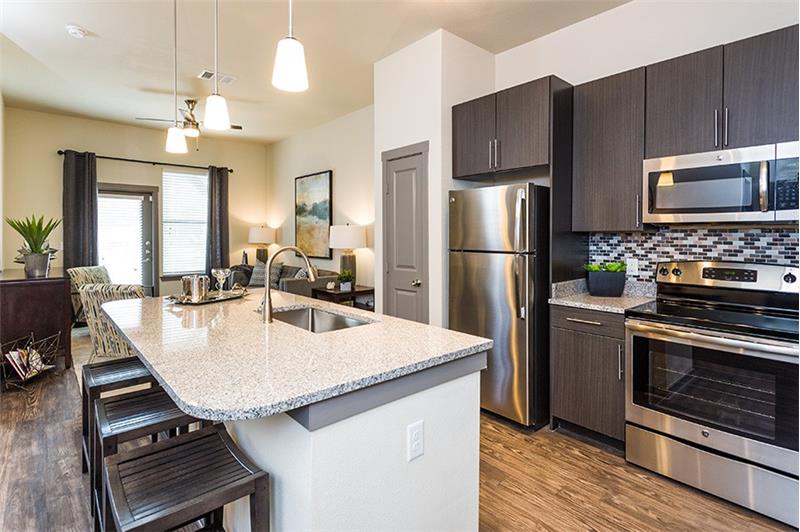 Experience the perfect blend of modern design and urban convenience in this vibrant community. These apartments feature spacious, open-concept floor plans with high-end finishes like stainless steel appliances, quartz countertops, and beautiful wood-style flooring. Large windows fill each home with natural light, creating an inviting and airy atmosphere. Residents enjoy access to a variety of amenities, including a resort-style pool, a fully equipped fitness center, and stylish outdoor spaces designed for relaxation or socializing. With on-site conveniences such as secure parking, package ...