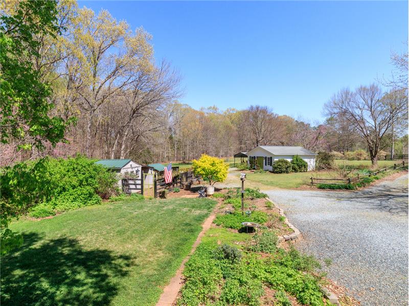 Discover a 5.7-acre market farm situated conveniently close to Mint Hill and Charlotte, a perfect blend of rural serenity and urban accessibility. This USDA zone 8a oasis thrives on sustainable farming practices, delivering a bounty of seasonal delights yielding year-round produce like vegetables, berries, fruit, herbs and flowers. With its charming brick ranch home, gardens, fields, woodlands and versatile outbuildings including a workshop/art studio, small barn, and chicken coop, all enclosed by a secure gated perimeter fence, this farm is a private estate, homestead and sanctuary.