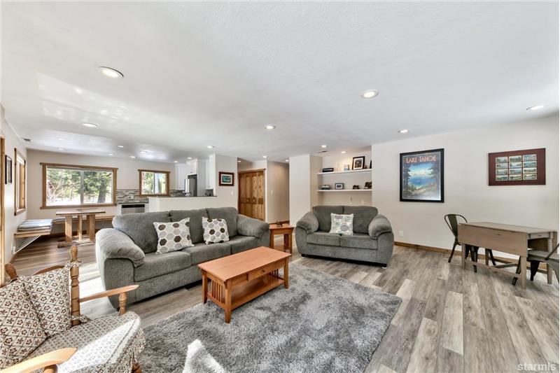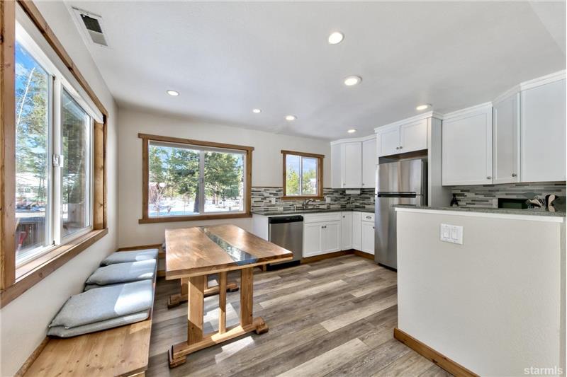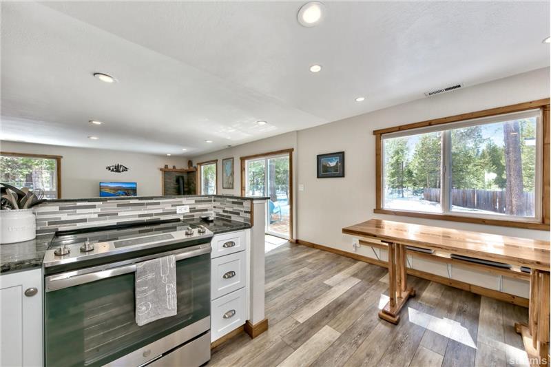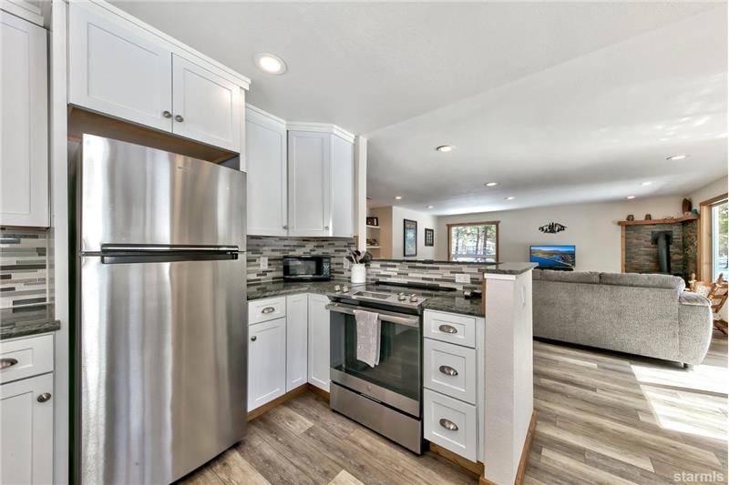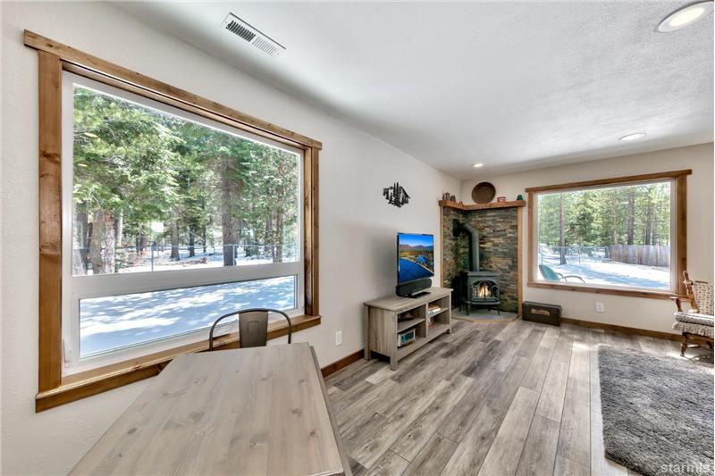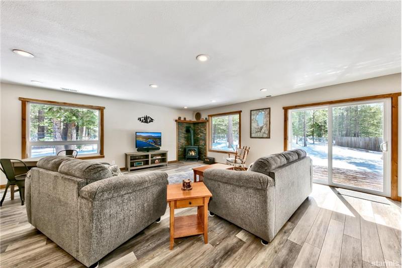 Sunny landscaped spacious parcel at the back of Bakersfield Court is the sweet setting for this upgraded & beautifully remodeled single-story home. Enjoy the Great Room living area with tons of light from expansive windows all with privacy & views of pine trees & the big, fenced yard. Easy to settle into this comfortable space with a free standing Jotul'' gas log stove & a glass slider out to the large back deck for outdoor relaxing a & fun. The kitchen dining area features granite counters, newer cabinets & upgraded stainless appliances.