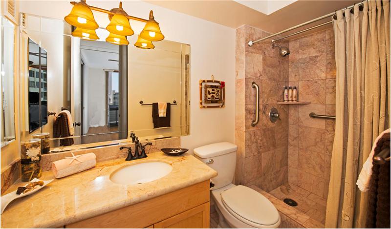 Tastefully & completely renovated 2BR/2BA condo featuring brilliant colors of city lights and water views. Spacious & efficient floor plan, feels larger than actual living sqft. Convenience with short distances to Ala Moana / Waikiki beaches, Ala Moana shopping center, eateries, bus-lines and many more essentials of the Waikiki's world famous location. 1717 Ala Wai is a secured bldg with plenty of amenities. Maintenance fee includes cable TV, (hot) water, sewer and common area expenses. Bldg is currently undergoing major common area improvements. Sold AS IS.