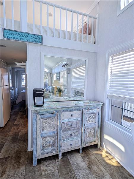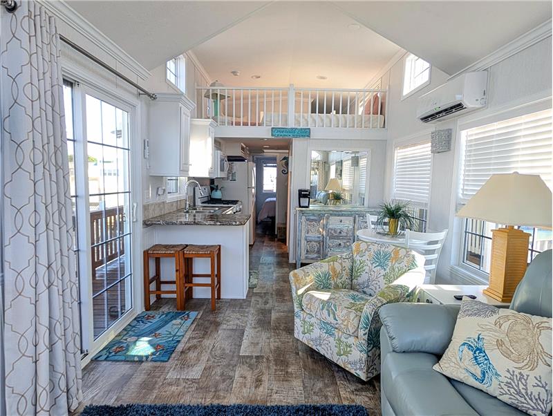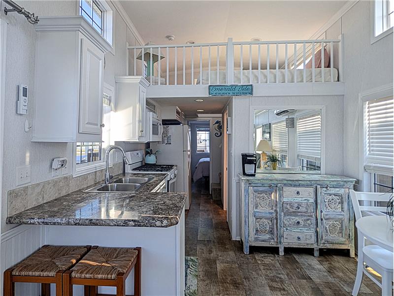 This fully furnished 2018 Stone Harbor park model with double loft is located on a large lot with front yard on the west side of the Boardwalk RV Park, a private, gated oceanfront community in Emerald Isle, NC. Just steps to the private beach entrance accessible only to residents of the Boardwalk RV Park. Located just a few blocks away from the Emerald Isle bridge, this prime location allows you to avoid busy island traffic but is still conveniently located within a mile of restaurants, shops, a movie theatre, putt putt golf, walking/biking trail and giant water slide attraction for the kids.