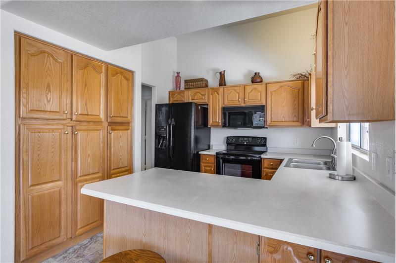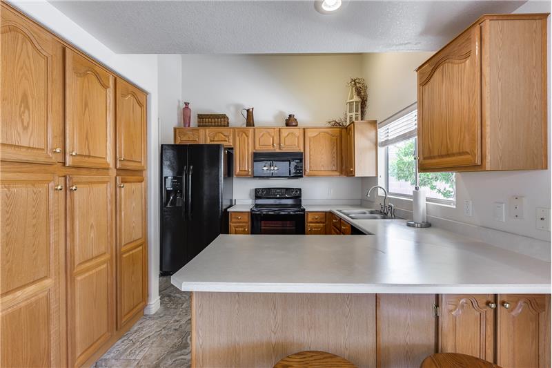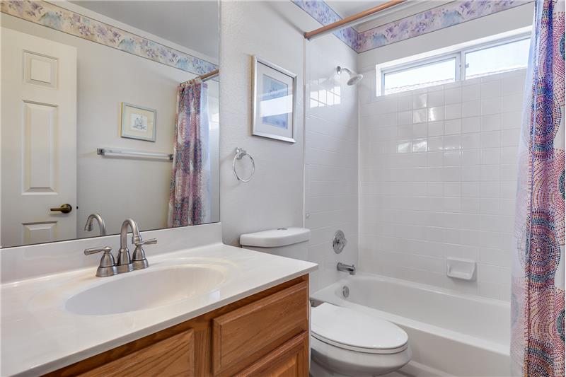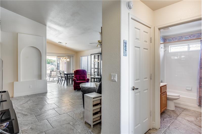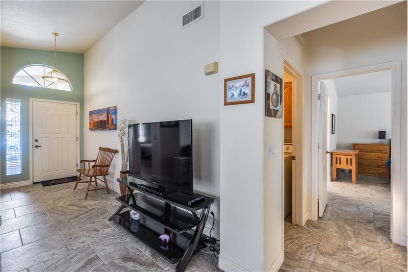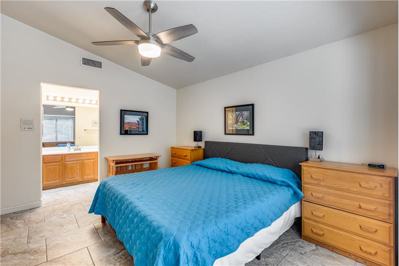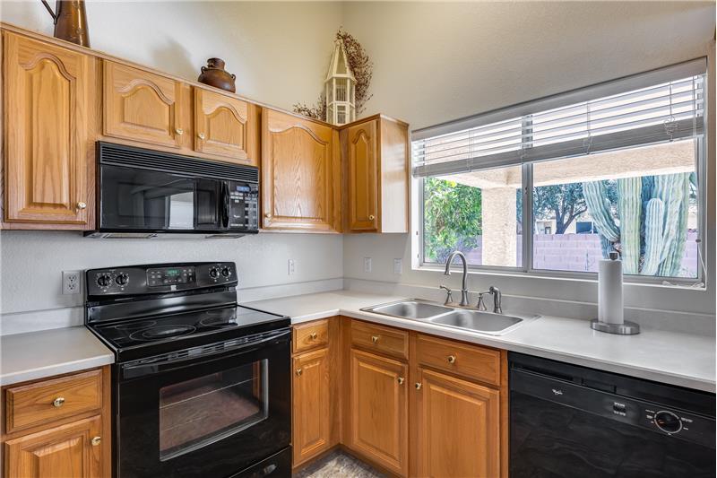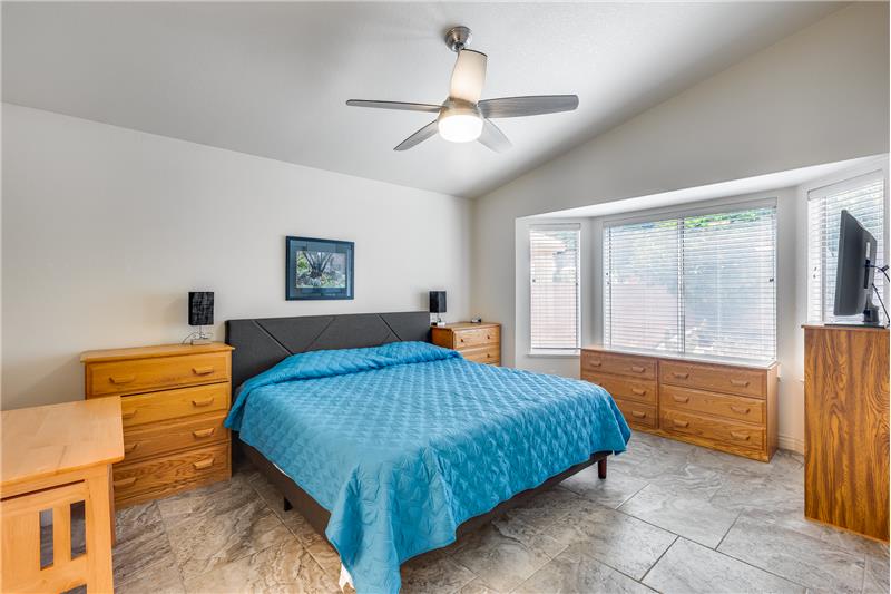 Welcome to this beautifully maintained home in the desirable Pueblo Village community! Step inside to discover an inviting open floor plan featuring vaulted ceilings, neutral tones, and tile flooring throughout. This fully furnished residence offers a stunning kitchen with warm wood cabinetry, built-in appliances, ample counter space, and a kitchen island with a breakfast bar, perfect for casual dining or entertaining. The serene primary suite boasts a bay window that fills the space with natural light, along with a private en-suite bath for added comfort and privacy.