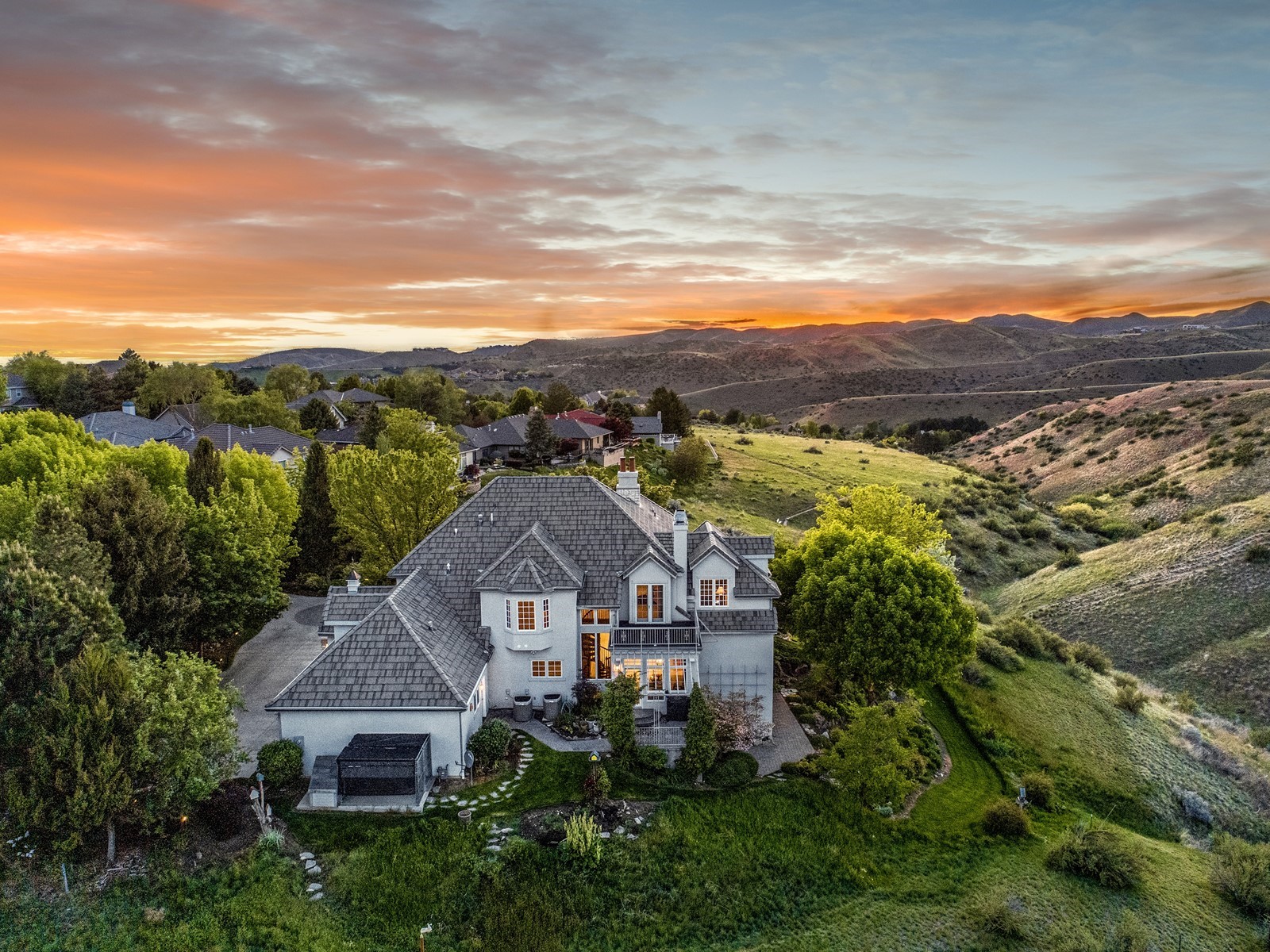 A private drive introduces a scenic outpost measuring .52 acres. Surrounded on three sides by panoramas of the Boise Front, with immediate access to hiking trails. A French country kitchen features granite counters, a fireplace, a butcher block counter, two ovens, and a 6-burner commercial range. In the master suite is a sitting area, private deck, fully tiled bath, and a separate exercise room/nursery. The lower level is dedicated to entertainment, with a 1200 bottle wine cellar, rec room and wet bar!