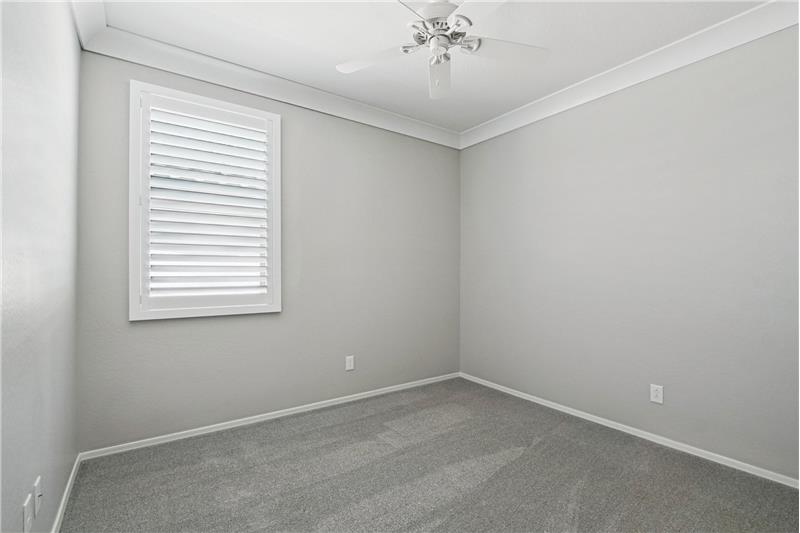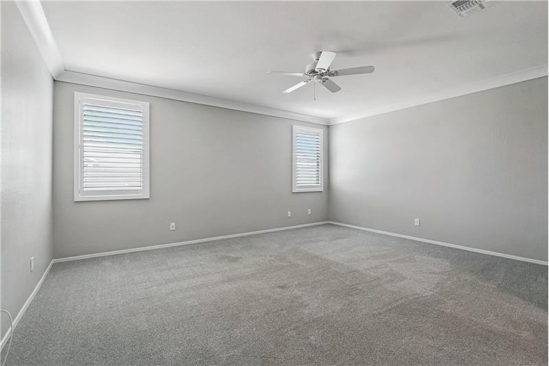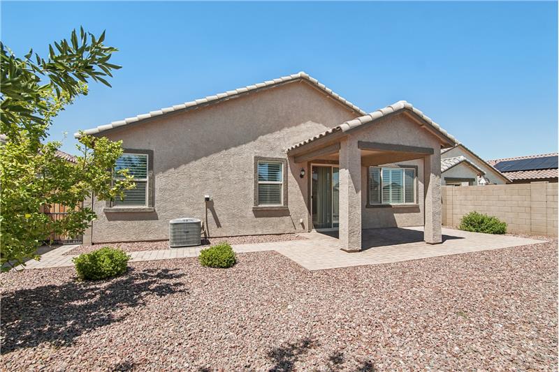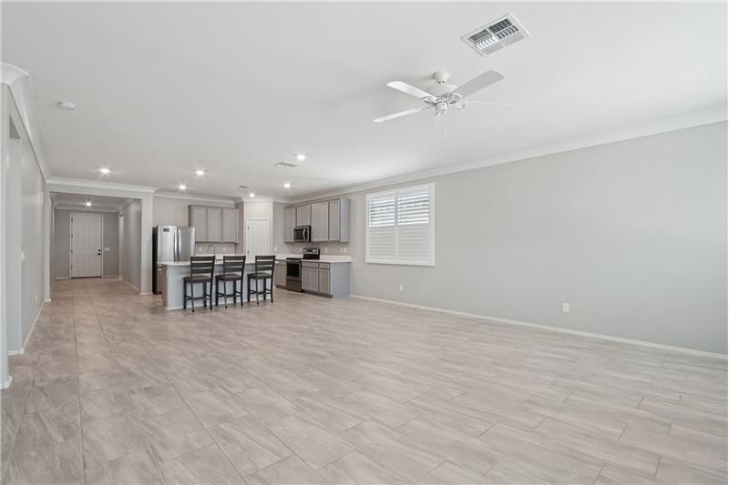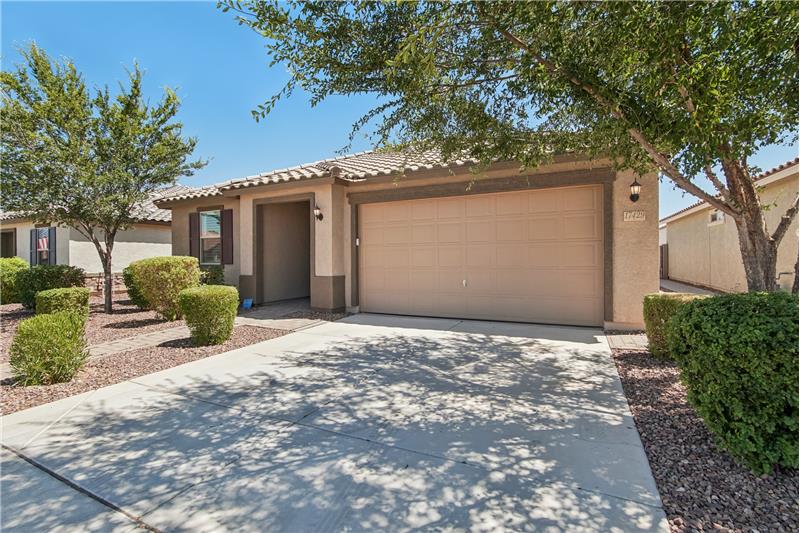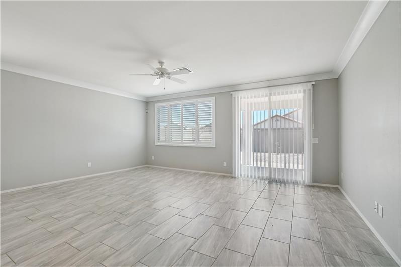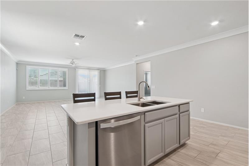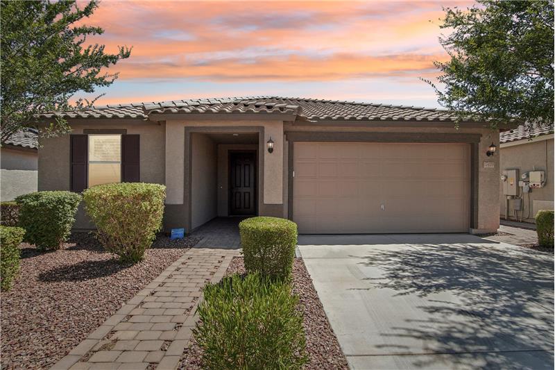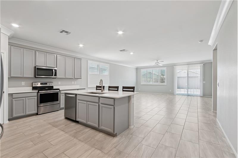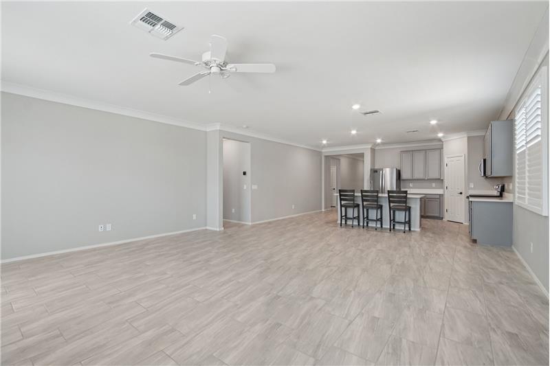 Beautifully maintained single-level home featuring an open concept floor plan with a spacious great room and modern kitchen. The kitchen includes stainless steel appliances, a large center island, and an oversized walk-in pantry. Tile flooring throughout the main living areas, bathrooms, and laundry and carpet in the bedrooms. The split floor plan offers a private primary suite with a generous walk-in closet, dual-sink raised vanity, and large walk-in shower. Additional features include beautiful plantation shutters throughout the home, two-tone paint, and solar!