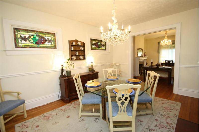 4 full levels of living space reflecting gentle grace, quality woods, elegant stain glass windows, sparkling chandeliers, innovation and character. Updates inc newer roof, furnace, ac, refinished hardwood floors, new kitchen w/brand new appliances 2014, updated 220 electric, plumbing, remodeled baths, new windows & more. Lower level finished with kitchen & full bath, family room with electric insert fireplace- potential for inlaw suite. Spacious rooms, remodeled dine in kitchen leads to 3 season room. Fenced well landscaped yard with patio. 2.5 car detached garage. Block off Franklin Park.