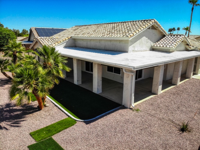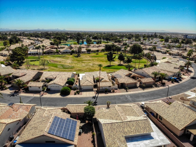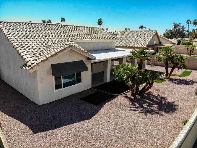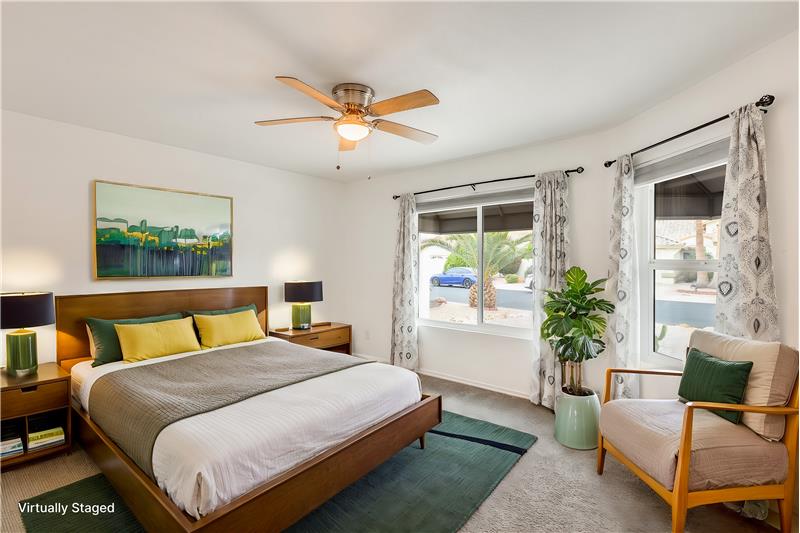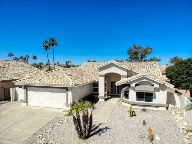Beautiful, Upgraded Santa Rosa in Gated Sun Village Resort . Home upgrades in 2023 - windows, slider doors, master bathroom & laundry. In 2021 - ROOF underlayment, HVAC, Tile floors, Paint, ligthing, ceiling fans & hardware too. Also turf grass and landscaping, window awnings recently installed + so much more. Bright Kitchen has Painted cabinets, Granite countertops, Stainless Steel Appliances. Vaulted ceilings in living area. Extended Covered Patio that provides excellent shade too. Sun Village is a 55+ Active Adult Community with Pickleball, golf, huge pool, woodshop, entertainment & more!