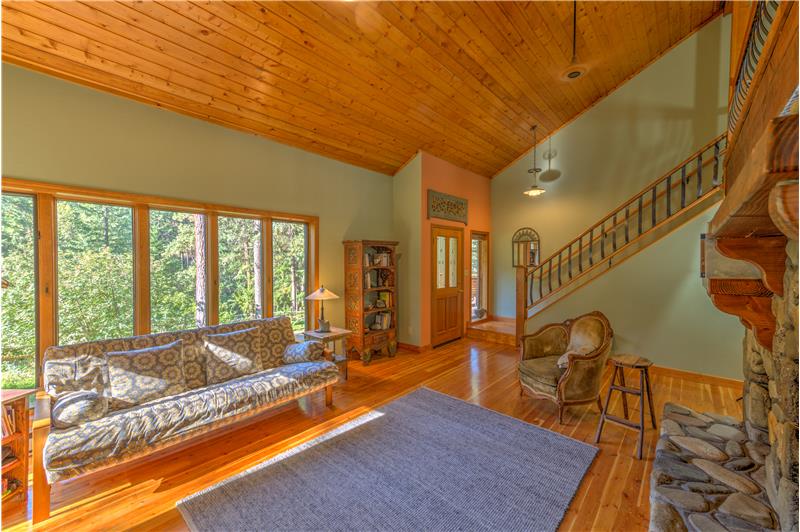 Libby Creek frontage and quality custom features throughout. Floor to ceiling river rock fireplace, loft, full finished basement, state of the art solar system, attached garage, green house, additional two bay garage or shop, outbuildings, corral, and National Forest on 3 sides. World class recreation abounds right out the door. Diverse landscape encompasses meadows, forests, lush fenced-gardens and lawn. Many varieties of established nut and fruit trees. Year-round creek with expansive frontage and foot bridge. Great 20 GPM Well plus artesian water. Easy year round access off paved road.