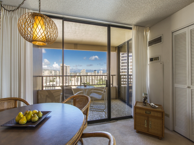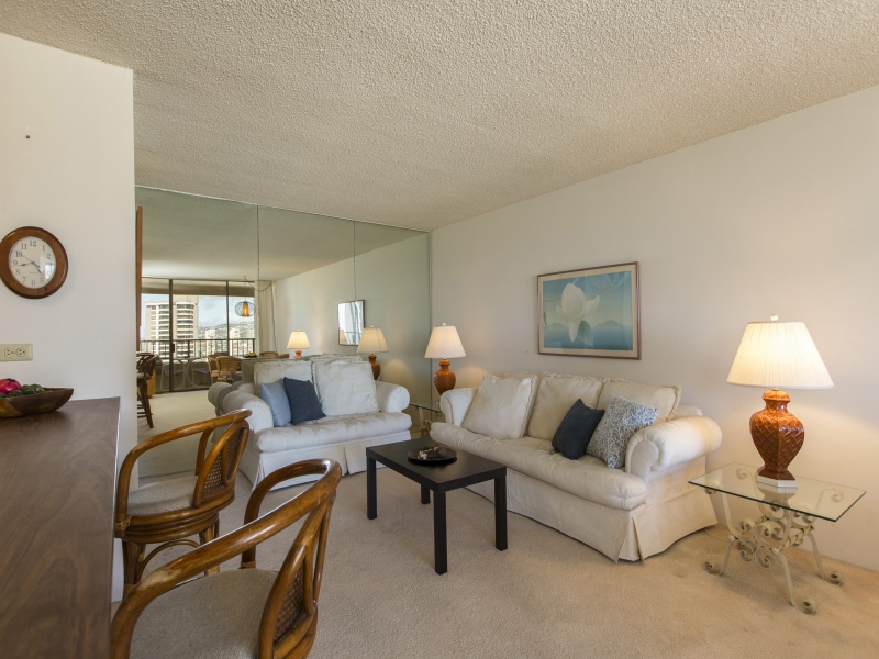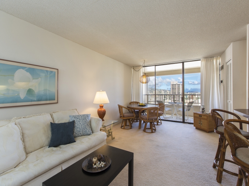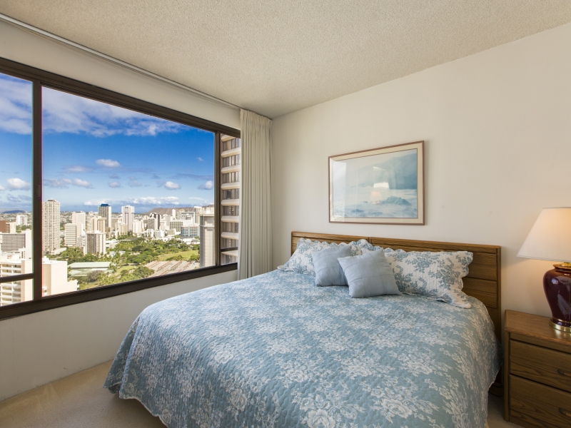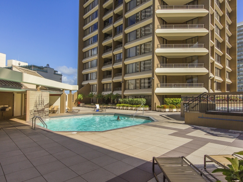 Leasehold property. A desirable high floor one-bedroom condo featuring brilliant colors of city lights, cool trade winds and mountain views. Convenience with short distances to Ala Moana / Waikiki beaches, Ala Moana shopping center, eateries, bus-lines and many more essentials of the Waikiki's world famous location. Discovery Bay is a secured and pet-friendly bldg. Maintenance fee includes cable TV, (hot) water, sewer and common area expenses. Fully furnished and sold AS IS.