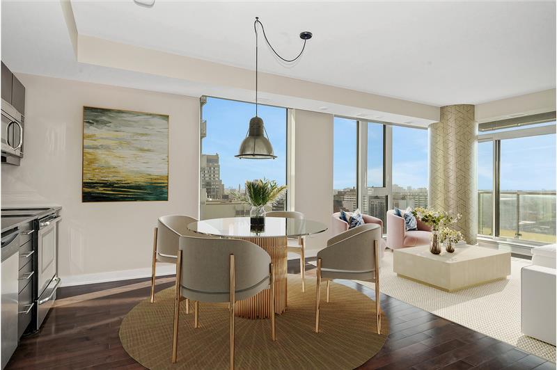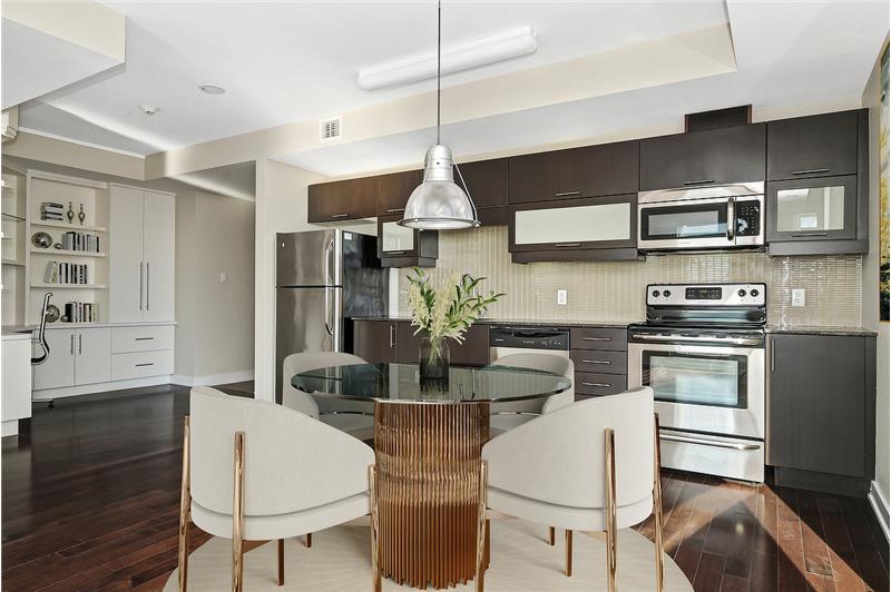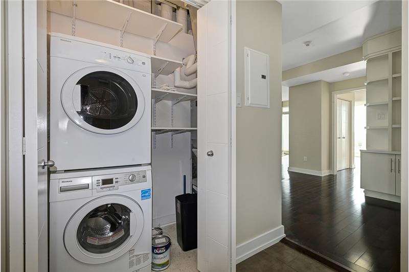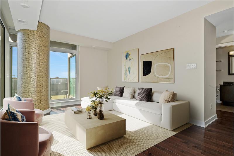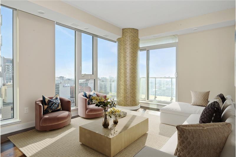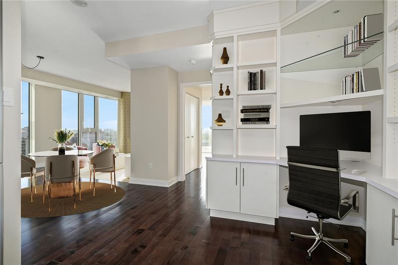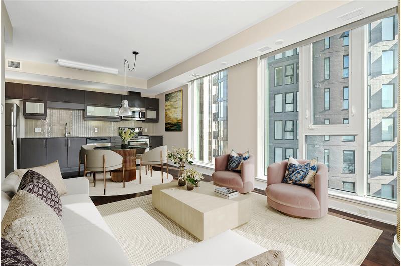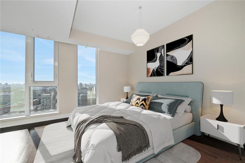 Stylish 1-bed + den condo in sought-after Tribeca! Bright open layout with floor-to-ceiling windows, balcony & city views. Hardwood floors, granite kitchen, in-unit laundry, top-tier amenities & prime downtown location.