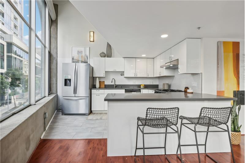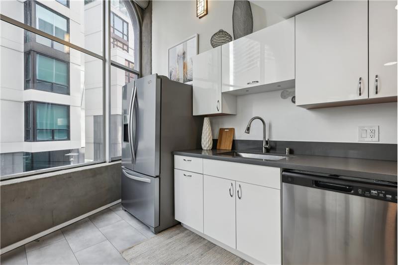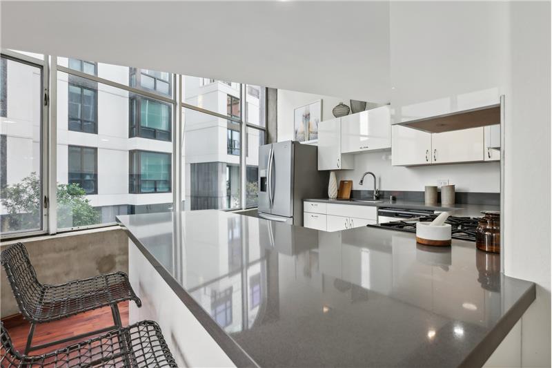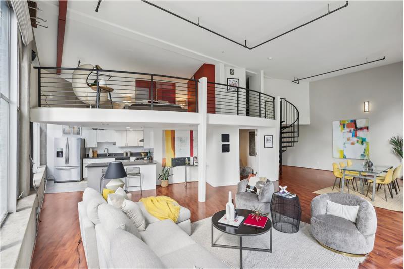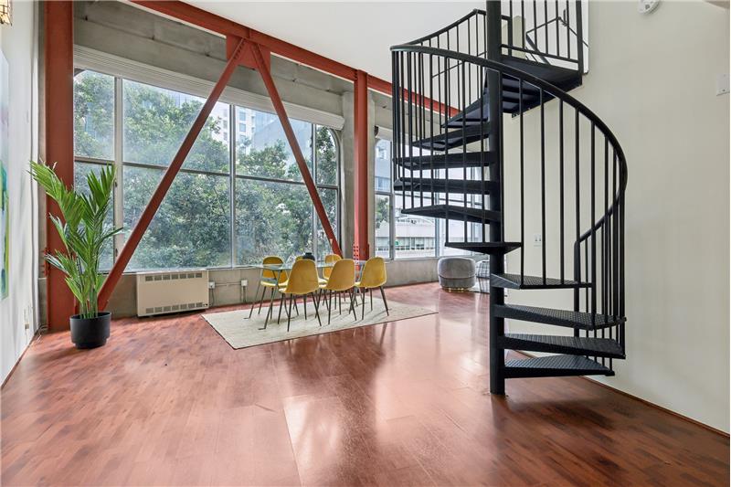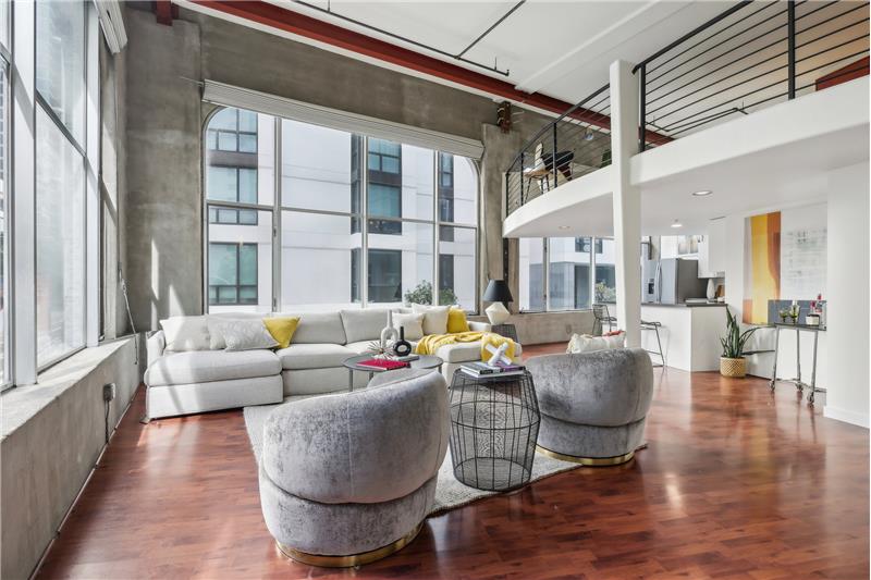 Experience city living at its finest in Unit #205 at 18 Lansing Street - a dramatic corner conversion loft with soaring sunny windows, sleek designer updates, and captivating skyline views from almost every room.
