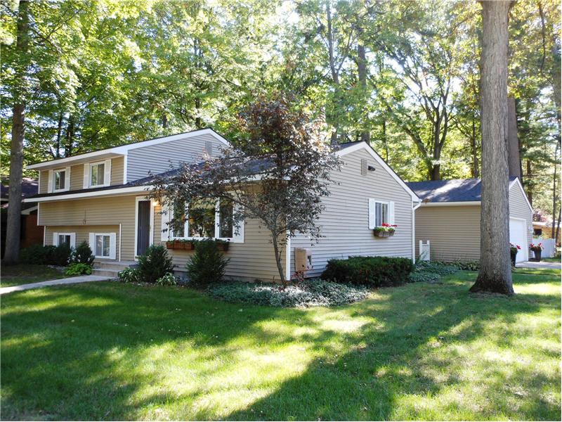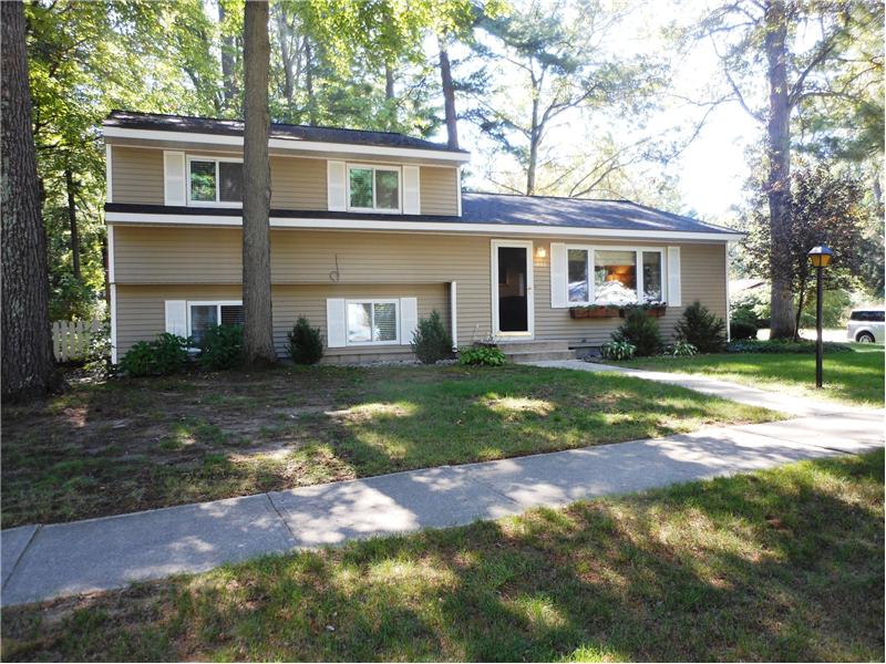 Chic, turn-key 3 bed / 2.5 bath home with many updates. This home is located on a large corner lot and features an open floor plan, attached two-car garage, hardwood floors, oversized laundry / storage room, lushly landscaped and fenced backyard that backs up to Indian Woods Park, tiled baths, newer windows, roof, carpeting in lower level, deck and fixtures. Great layout with two separate living areas. Easy walking distance to East Bay beaches, college, parks and a quick jaunt to downtown Traverse City. Tons of charm and personality!