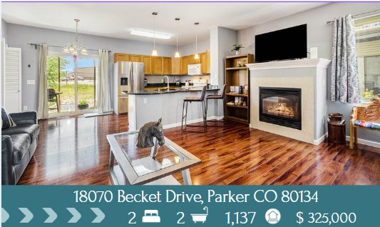 Nestled among the breathtaking vistas of Parker, Colorado, lies a charming end unit 2-bedroom, 2-bathroom first floor condo that seamlessly blends modern sophistication and cozy comfort. Upon entering, you'll enjoy the open-concept layout, flooded with natural light that highlights the contemporary design elements. The spacious living area, featuring an open feel and a gas fireplace, is perfect for relaxation or entertaining, while the well-appointed kitchen with sleek finishes beckons culinary adventures.