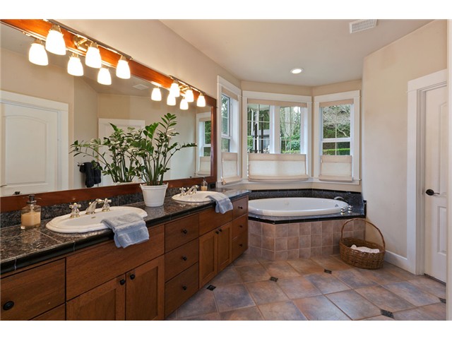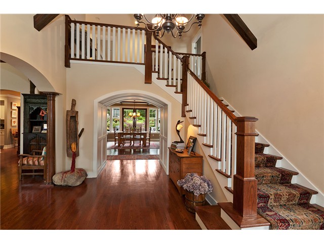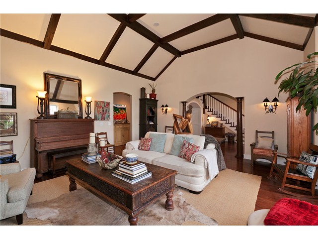 A home that is exquisite with quality & old world charm. The layout is extraordinary with 4 bdrms that each have ensuites! Master suite on the main level with a grand den adds to the well thought floor plan. Entertain a quaint gathering or invite the neighborhood the courtyard allows the outdoors in as you sweep through french doors into the gorgeously maintained terraced half acre property. Surround sound, irrigation, gated entry, 2 fps, bonus rm & more! Don't miss, meticulously maintained home