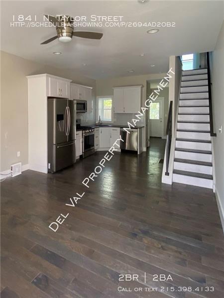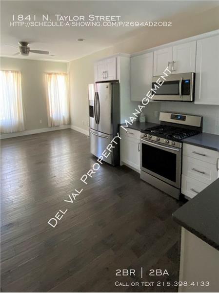 - Improved Rent! Beautifully Renovated 2-Bedroom Row home in North Philadelphia West is available for Rent Now! - $1,319 / month plus utilities - 2 Bedrooms - 1.5 Bathrooms - 942 sq. ft. - On street parking - Other rooms in open floor plan include Kitchen, Dining / Living area - New Eat-in Kitchen has Stainless Steel appliances including Gas stove, double door Refrigerator, Dishwasher, Built-in-microwave and More! - Washer/Dryer on 2nd FL - Please see Description Page for more Information!