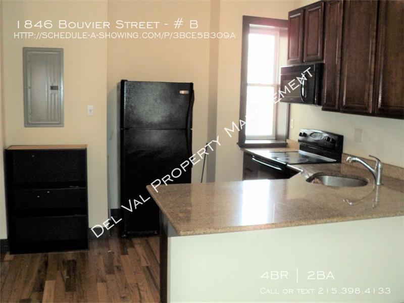 - Rent's Been Improved! Renovated 2nd/3rd Floor Apartment in Templetown is available – Students Welcome! - $1,995 / month ($498.75/per bedroom) plus electric and $80 flat fee for water. Trash and sewer included in rent - 4 Bedrooms - 2 Bathrooms - Street parking - Other rooms include Living room and Kitchen - Eat-in Kitchen is modern with Refrigerator, Electric stove and Microwave - Walk to Temple University, public transportation, many shops and eateries - Washer / Dryer in unit - Please see Description Page for More Information!