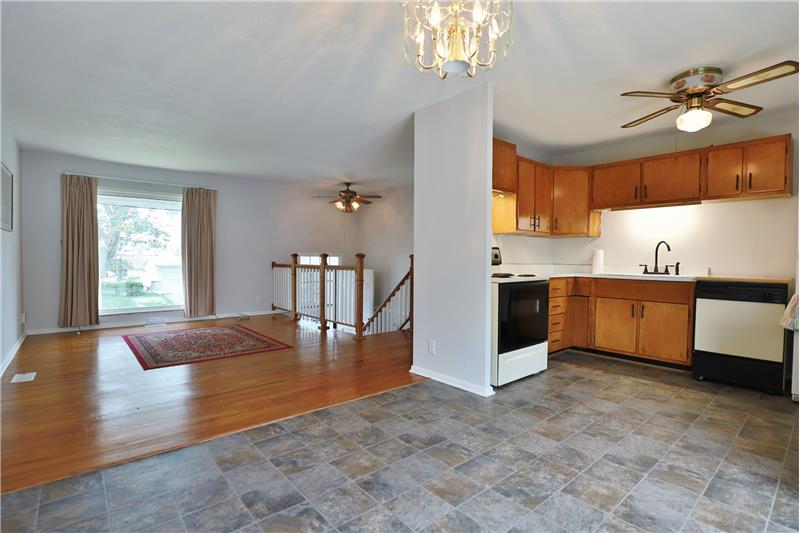 Excellent opportunity to own your own home! This beautiful home has been meticulously and lovingly maintained! The main floor of the home has warm wood flooring in the living/dining and bedrooms. Lots of natural light throughout this home. Nice kitchen with all the appliances. Owners bedroom with half bath. Finished lower level has beautiful retro wet bar for entertaining! The men will love the well thought out garage with built in storage! Low maintenance siding and appealing covered back deck. Newer Roof! Shed! This home also comes with the washer and dryer if the buyer needs them. The spaci