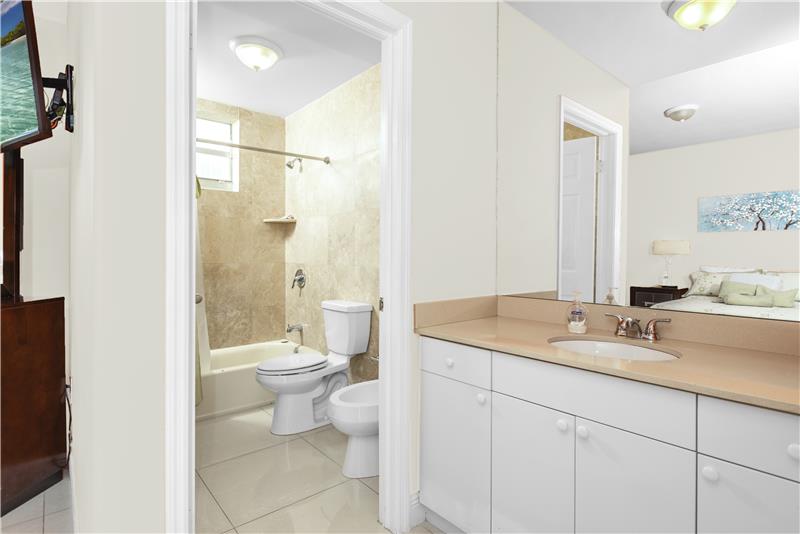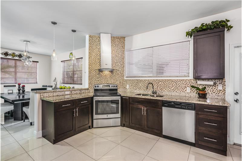 Flexible floorplan with lots of possibilities to accommodate different needs & lifestyles. 3 Bd/2 ba plus den & an attached 1 bd/1 ba guest quarter with two entrances. Open eat-in kitchen with granite counters & European style wood cabinets. Large master suite with walk-in closet. Generously sized bedrooms. Bright interiors with large 24” x 24” tile throughout. Paved back/side yard with terrace. Situated on a corner lot with front porch & several gorgeous trees including a Kapok (Ceiba) tree. Central location & short stroll to several nearby parks, schools, & all the excitement in Calle Ocho.
