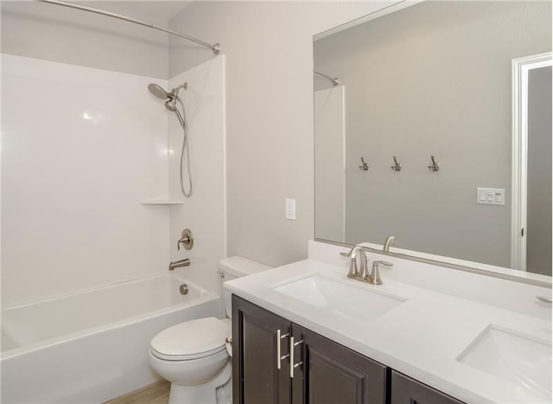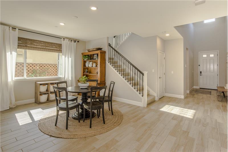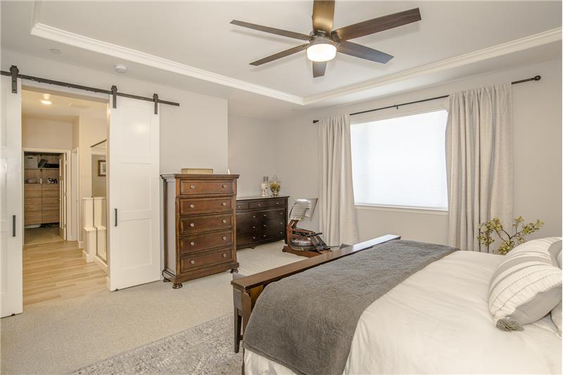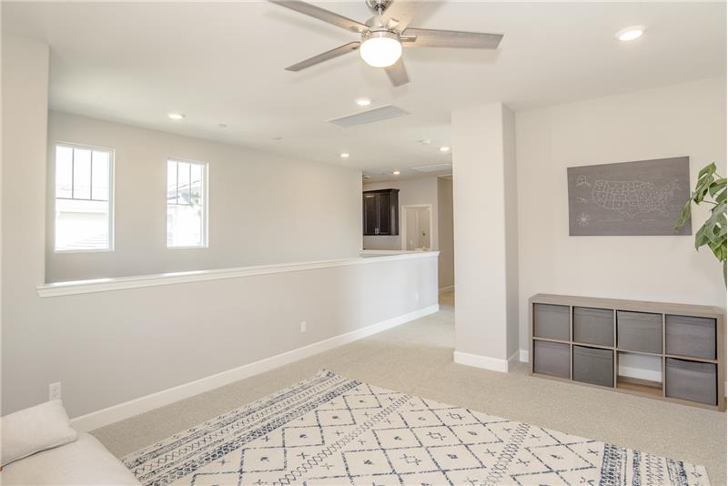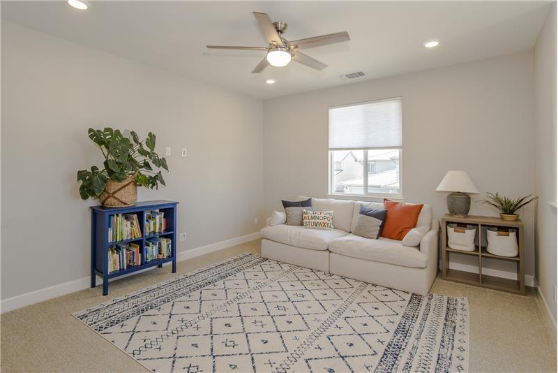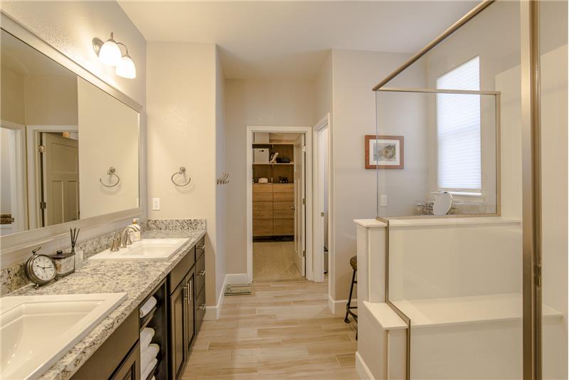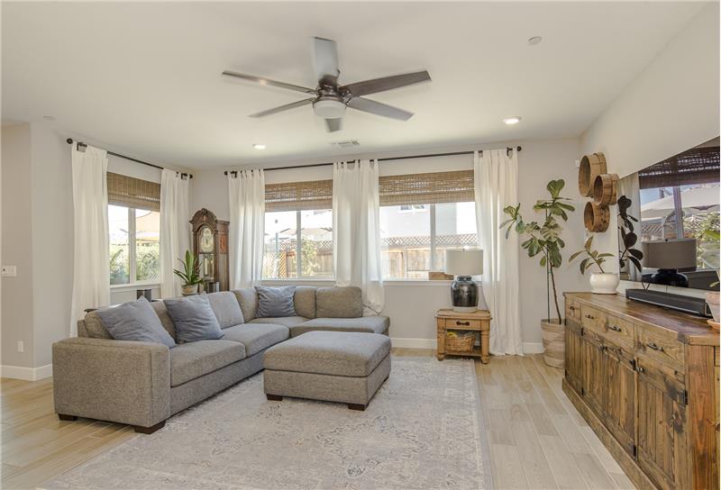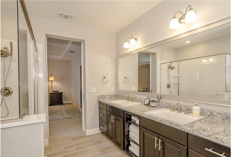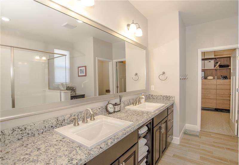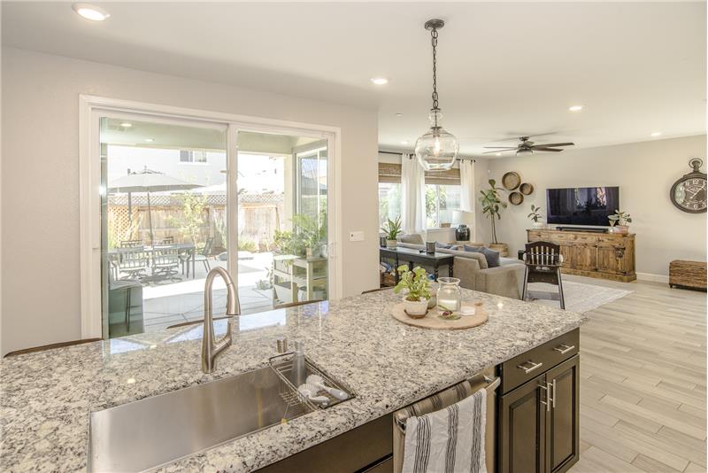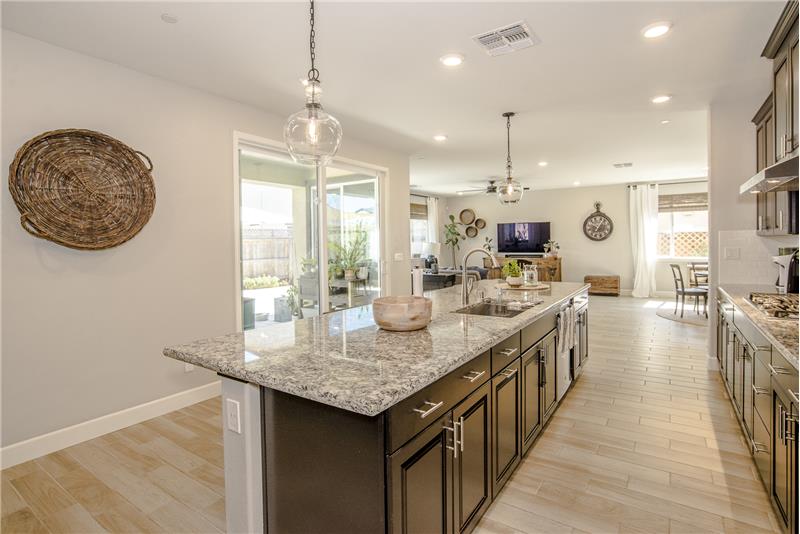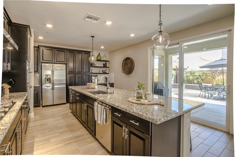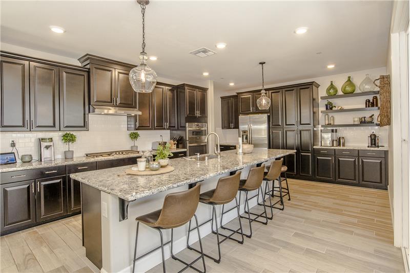 This contemporary home was designed, built, and appointed to impress! Perfect for multi-generational families with a bedroom and full bathroom downstairs. The open concept great room enjoys lavish natural light from the windows looking into the backyard. The gourmet kitchen boasts granite counters, abundant storage and counter space, modern appliances, gas cook-top, and pendant lighting over the island dining bar. Upstairs you will find a large family room, two bedrooms, and a dream master suite with coved ceilings and walk in closet. Sleek landscape design in the four season backyard.