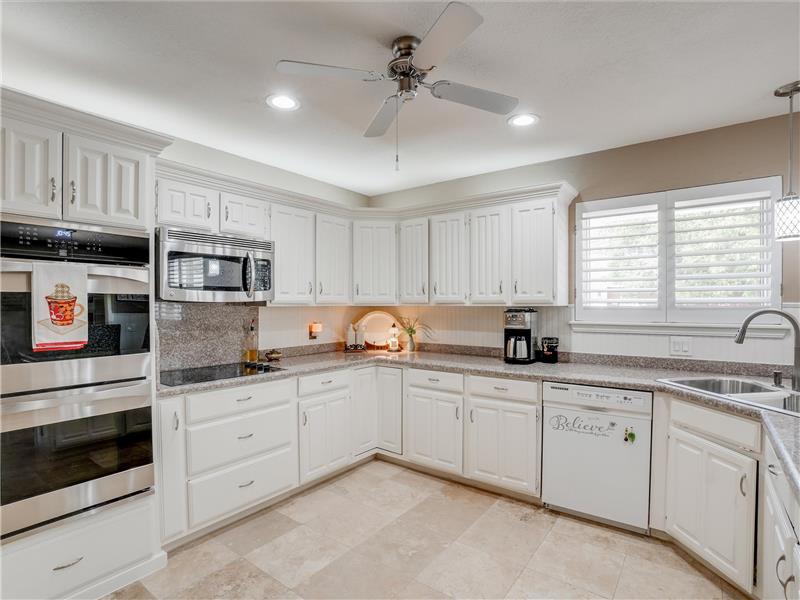 The whole package! 4 CAR garage, POOL, workshop, GUEST SUITE WITH KITCHEN, updated and pristine!! Perfectly maintained with many systems updated within the last few years! HVAC, roof, water heater, vinyl windows are done for you! Bright and beautiful kitchen with stainless double ovens, granite counters, white cabinets, spacious eat in kitchen. All bedrooms and living are downstairs except the flex space upstairs that could be an in-law suite or landing pad for a young adult that could be a studio apartment complete with kitchen. Walk to great schools and recreation. Don't miss out!