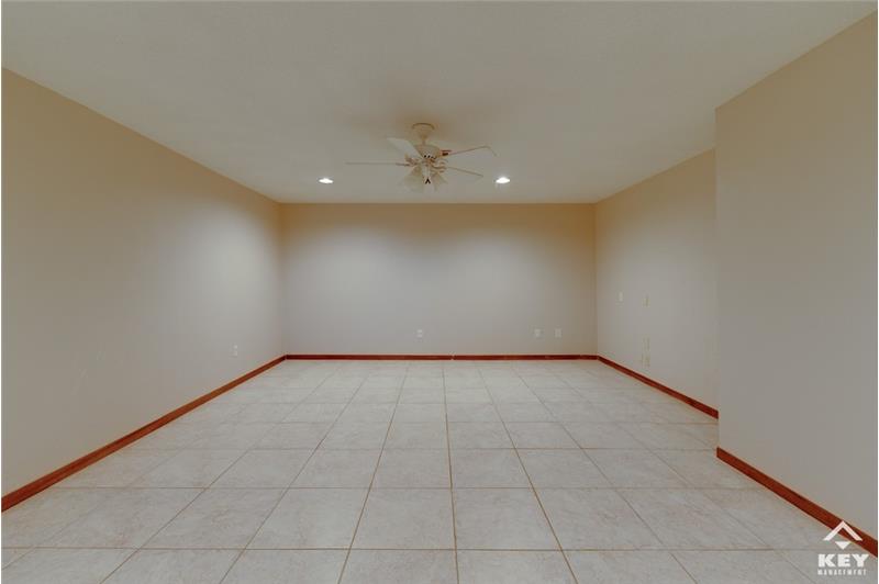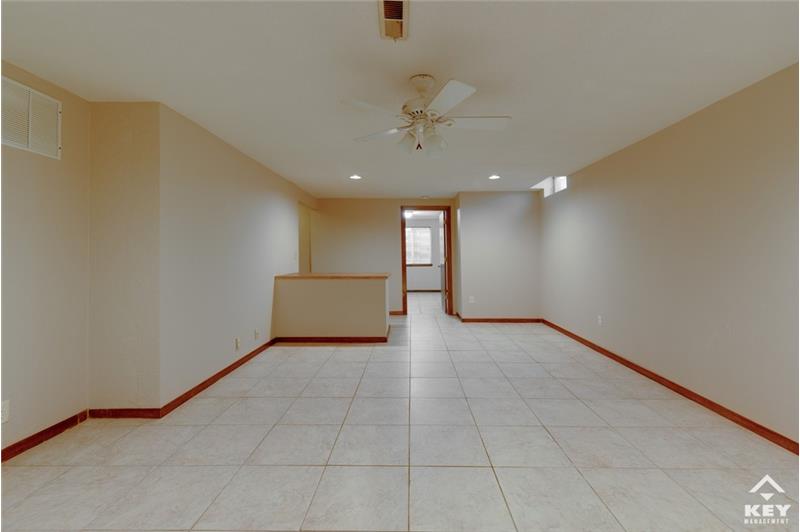Northwest Wichita 1,978 sq. ft. 4-bedroom, 3-bath ranch style house with a finished basement, 2-car attached garage, and fenced backyard near N Tyler Rd and W 21st St N. This home features central heat and air conditioning, a wood-effect tiled floor in the living room, ceramic tiled kitchen floors with an oven/range, refrigerator, dishwasher, and garbage disposal included, and an integrated dining room with sliding glass door access to the back patio. The main level offers 3 carpeted bedrooms with ceiling fans, including a primary bedroom suite with a full ensuite bathroom with a standing ...