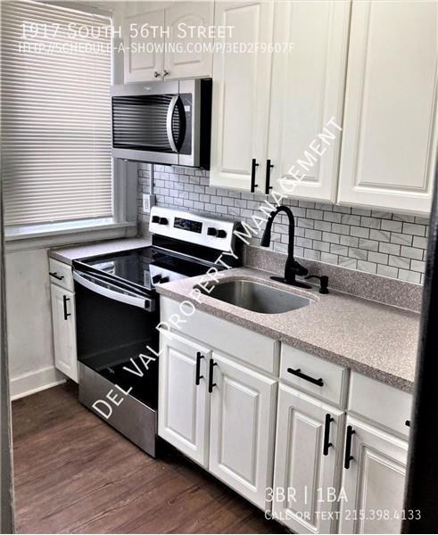 • We've Improved the Rent! Renovated Row Home for Rent in Kingsessing Area – 1917 South 56th Street- Section 8 Accepted! • $1,215 + utilities • 3 Bedrooms • 1 Bathroom • Accepting 3-Bedrooms Section 8 Housing Voucher • Modern kitchen comes equipped with electric oven & built-in microwave, decorative backsplash and cabinet space • Polished hardwood floors throughout • Bedroom ceiling fans • Washer & dryer in clean, dry basement • Enclosed front porch • For more Information, please see Description Page!