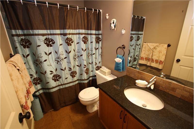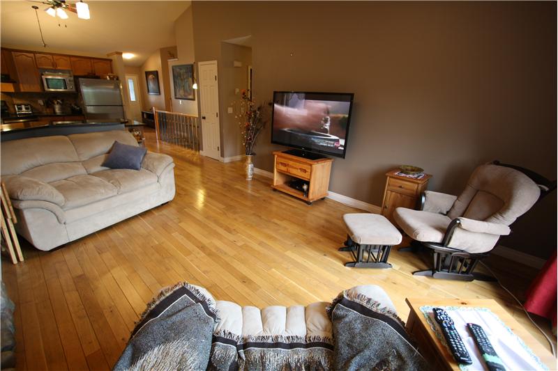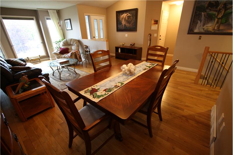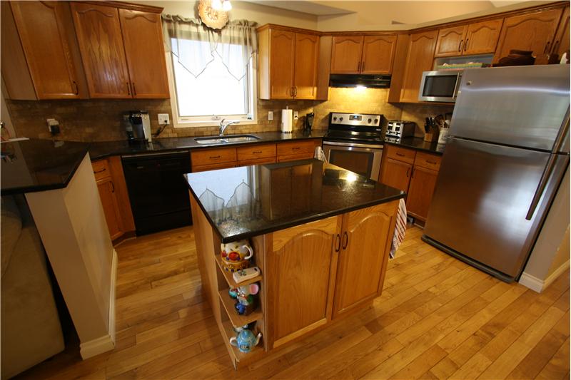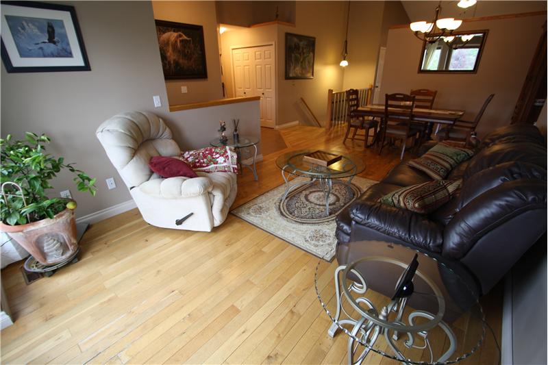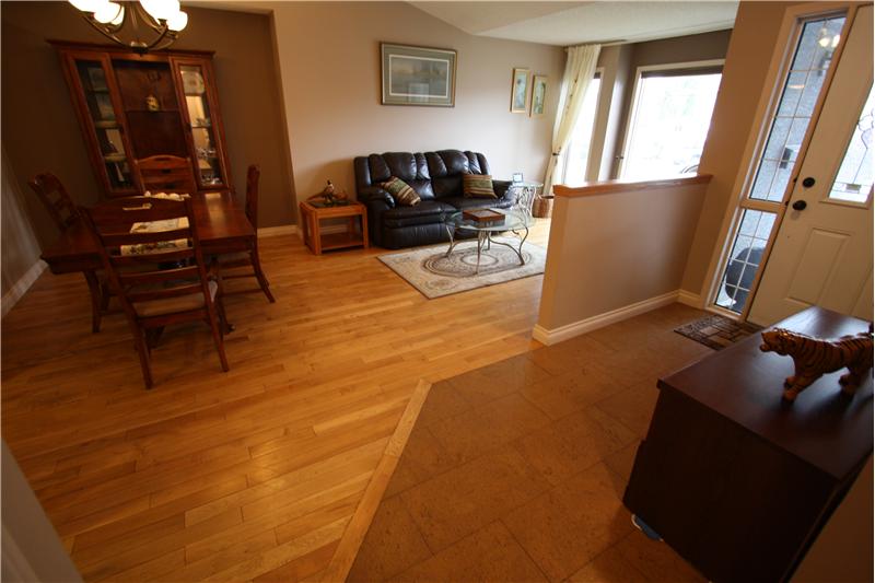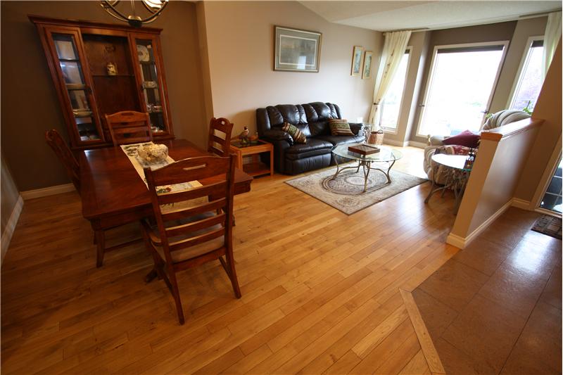 1514 sq ft 3 bedroom bungalow on Lakeside Greens Golf Course. Updated 3 Bedroom Home with beautiful hardwood and cork flooring. Granite counter tops and Shaker cabinets in the this big bright kitchen with a corner pantry, raised eating bar and an island. Custom stone fireplace and sliding doors off the family room to west facing deck. This home backs onto green space (not the golf course) and is very private and quiet. Four piece master ensuite with granite countertops. Main floor family room, dining room and living room, 2 baths, 3 bedrooms. Large-well-planned but undeveloped basement wi