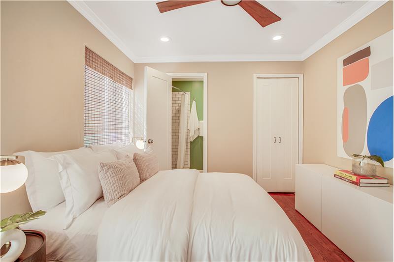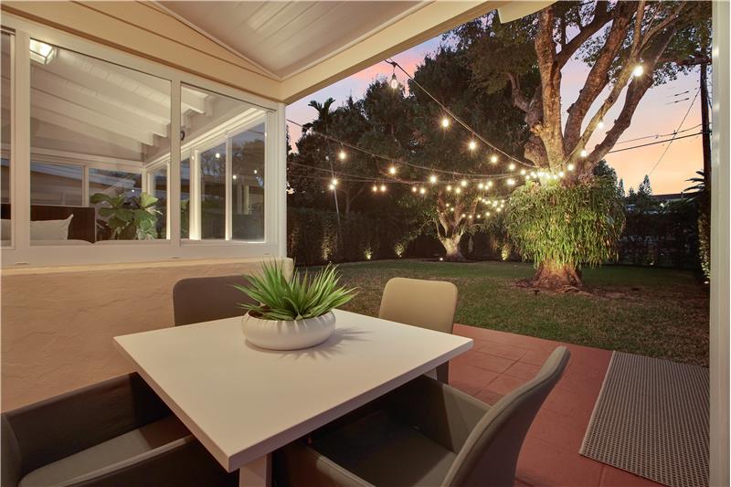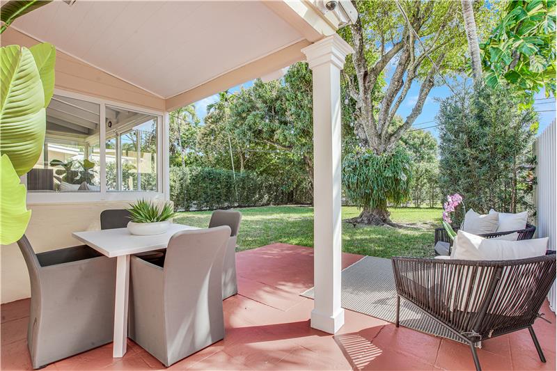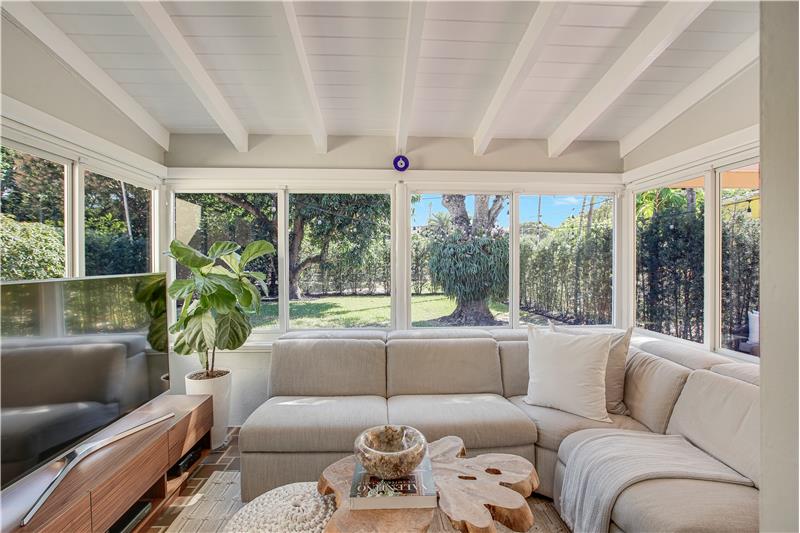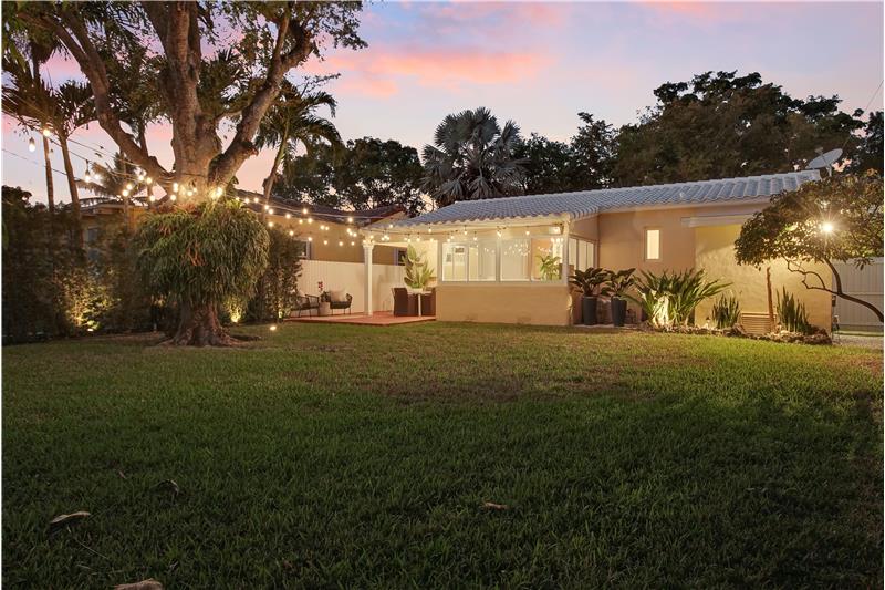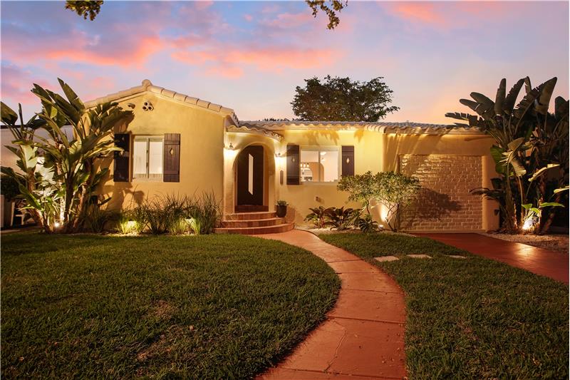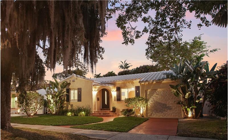 Situated on a low-traffic tree lined street. Renovated 3b/2b home with 1,348sf & many original architectural details. Major updates: 2021 tile roof, impact windows, upgraded electric panel & wiring - all with permits. 2023 A/C. Updated plumbing, kitchen & baths maintaining the home’s character. Restored original hardwood floors. Principal bedroom with 2 closets, including a walk-in with custom built-ins & cedar closets. Sunroom with exposed beam ceiling. Private & fenced yard with hedge, mango & oversized staghorn! Smart home, motorized shades, landscape lighting, cameras, security & more!