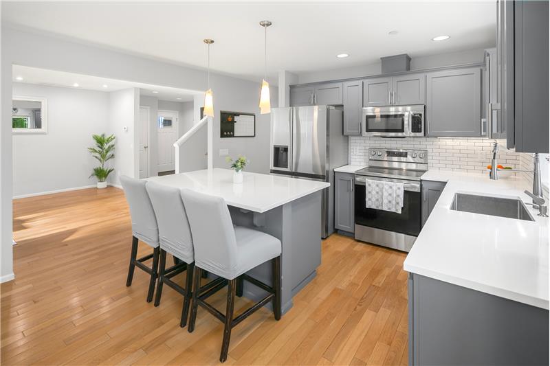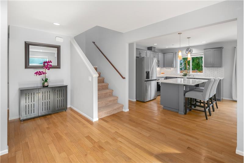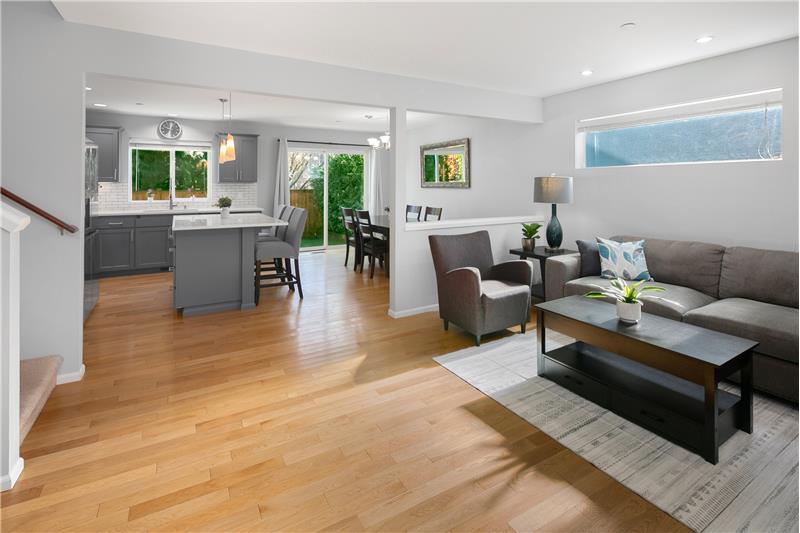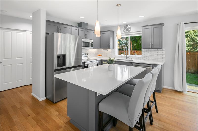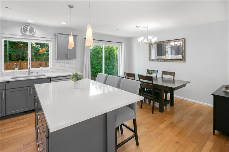 Striking NW Craftsman style 3 bedroom/2.25 bath home in the sought-after Filbert Park neighborhood of Bothell. This NW Independent Builders home features an open concept great room floorplan that’s bathed in natural light, with oak hardwood flooring, custom recessed lighting, and spacious high ceilings throughout. Great room with adjoining dining room and powder room makes entertaining a breeze. The efficient floorplan also features convenient access to the patio. The gourmet kitchen is a cook’s delight and perfect for entertaining with quartz counters, custom cabinets, huge worki ...