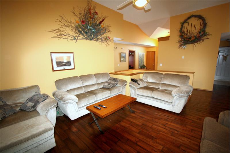 Boat, Trailer and People Space. This 1452 sq. ft. bungalow in Chestermere has 3 bedrooms up and 2 down in the fully developed basement. Located on an 79 x 118' foot wide corner lot so there is lots of room for your toys. Great room plan with vaulted ceilings, and fireplace. Beautiful hand-scraped hardwood floors in the great room and common areas. The kitchen has tile floors and the basement has Berber carpet. New roof. If you are looking for some elbow room this is the home you will want to see. $407,000.