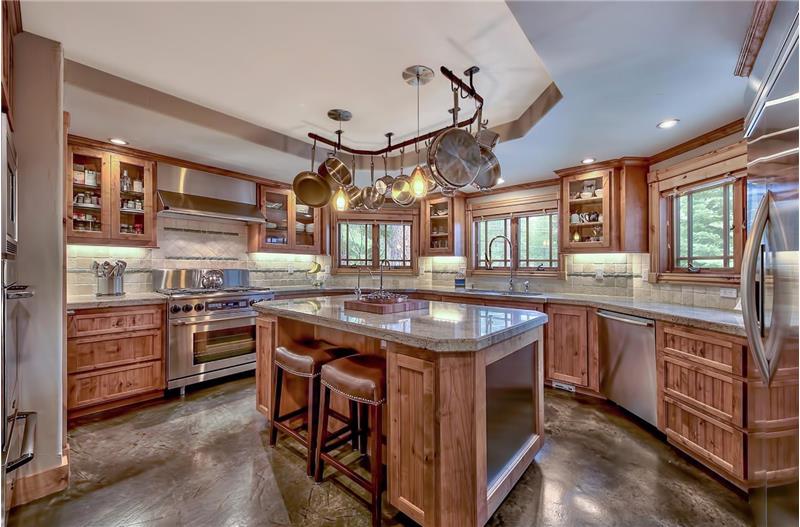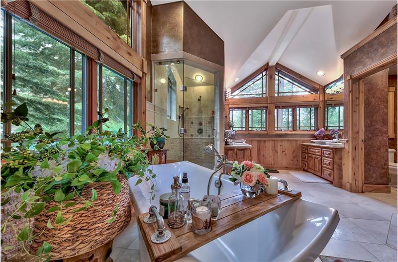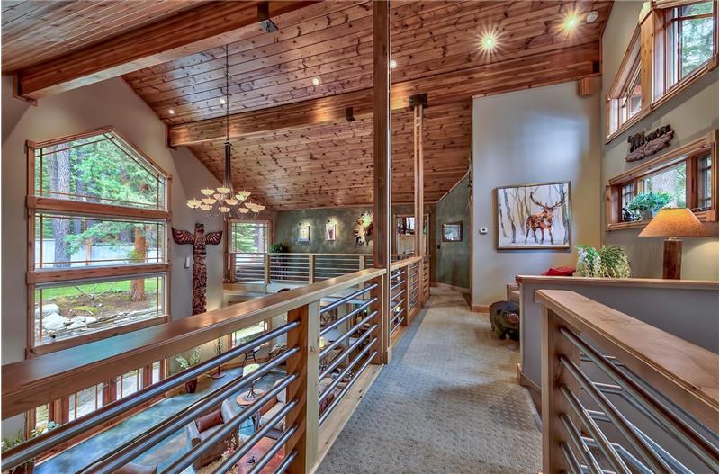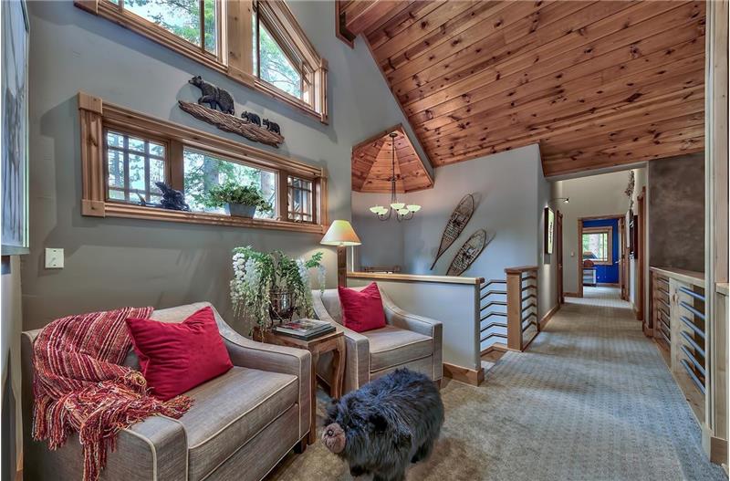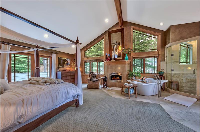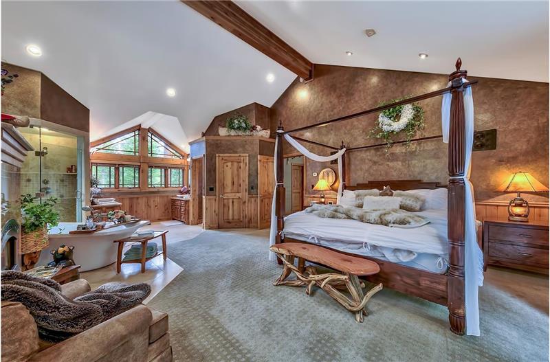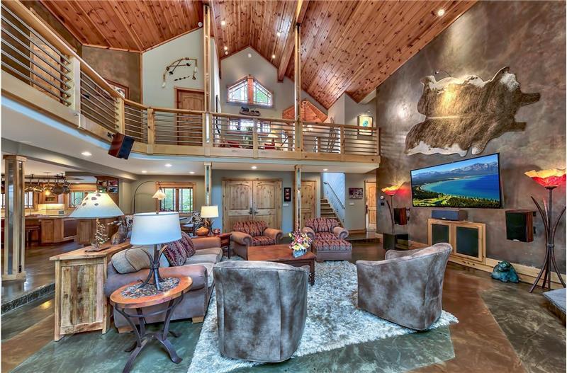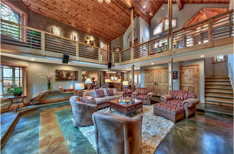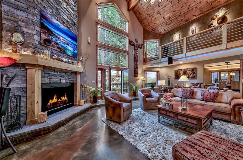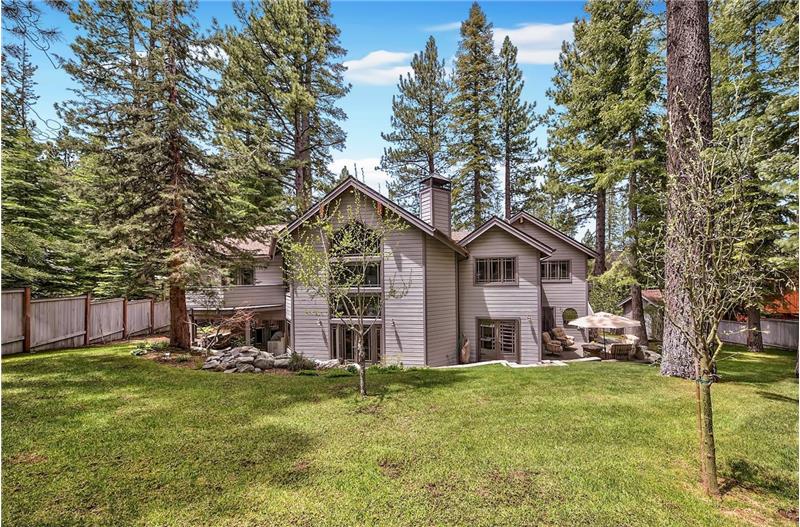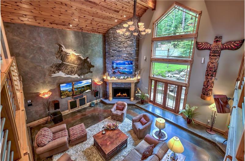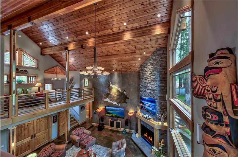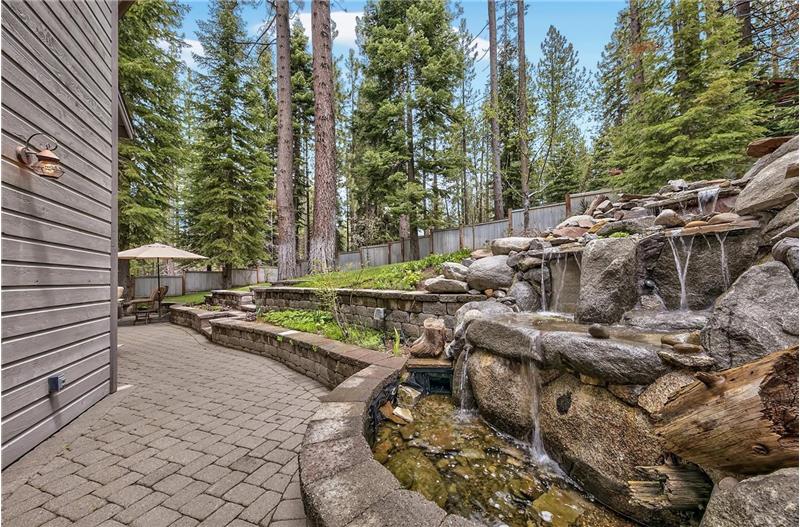 Beautifully landscaped park-like approximately 1/3 acre is a fenced & private parcel that provides outdoor extended living from the spacious patio as you enjoy the serenity and beauty of the impressive waterfall, gardens and lawn. Undeniable design excellence and appeal with full Cedar shiplap siding, all natural wood windows, doors & cabinets, 28' ceilings in the living room, 3 fireplaces, coffered ceilings in kitchen and dining areas of the great room.