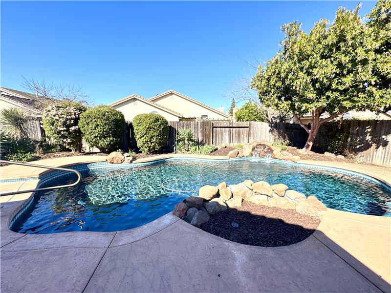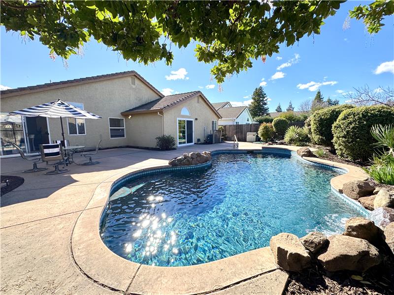 A SPARKLING POOL is at the top of a long list of boxes this stylish single story will check!