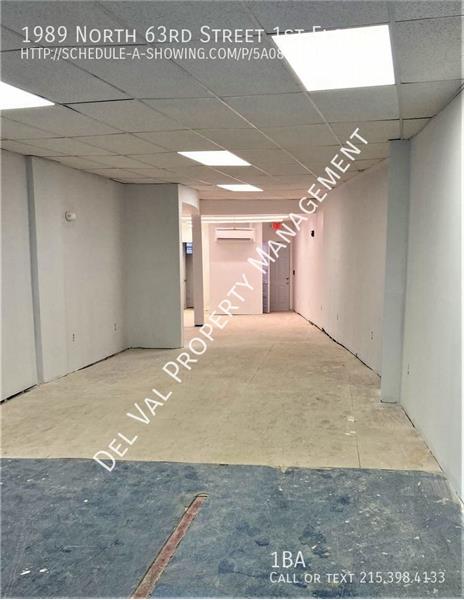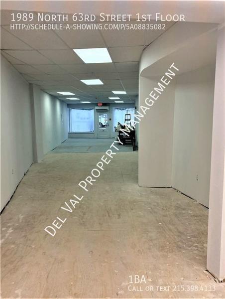 • LARGE Commercial Property For Rent - 1989 N. 63rd Street, 1st FL, Philadelphia (Overbrook Farms) • ideal for a Multitude of Businesses! • $1,965 per month + utilities • 1,500 sq ft • Lots of foot traffic • Big Storefront Windows welcome display browsing • Decorative iron bars & gate for security and signage space • Clean & freshly painted • Forced-air heating • Mini-split air conditioning – compact & efficient! • Tenant’s choice of flooring (within reason) • Bathroom (gender neutral) • For more Information or a Showing, please see Description Page!