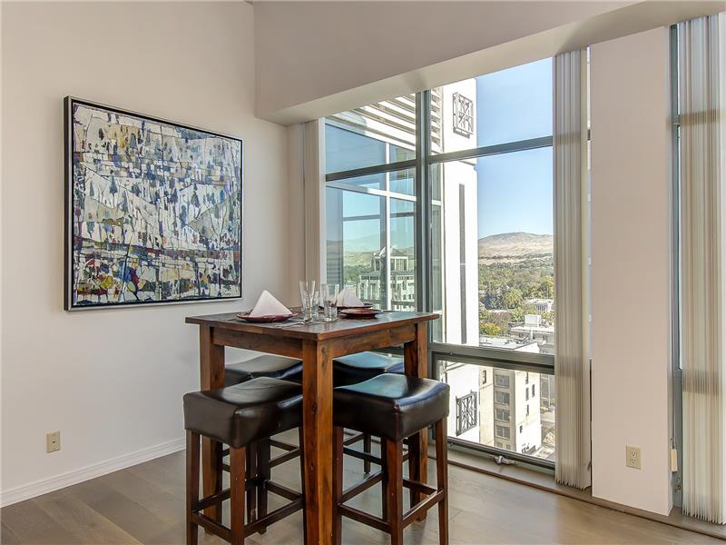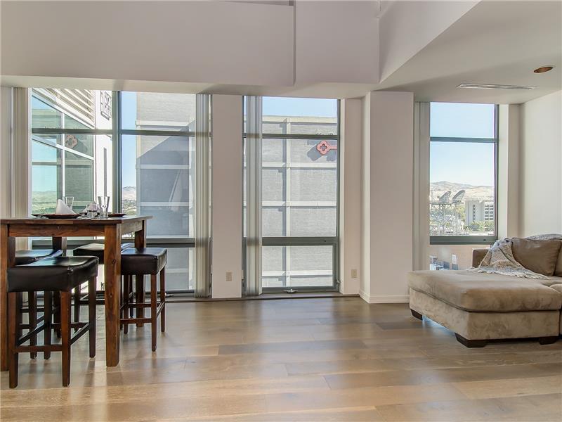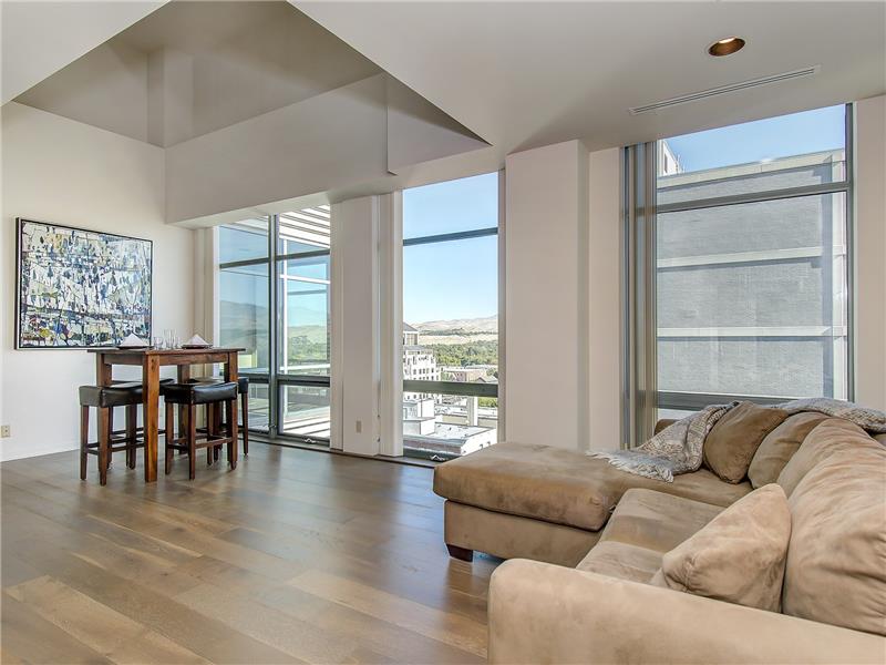 Downtown Boise high rise with views to the foothills and city below. Unit is on north side of the building; very light, bright and clean. 1 bedroom loft, 1.5 baths. New interior paint, carpet and wood flooring. Wall of windows expands your view over downtown Boise. Restaurants, shops, groceries, bakeries all steps away from this quiet 10th floor unit. Open floor plan with upstairs private loft. Building is secure.
