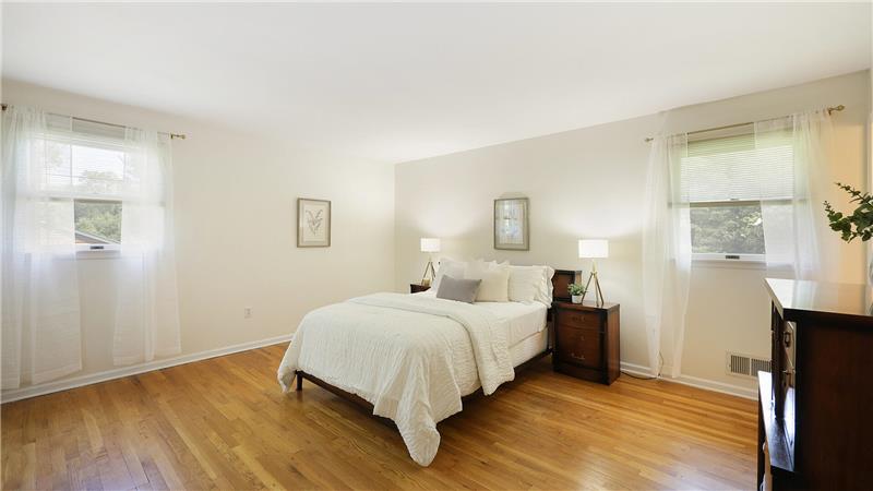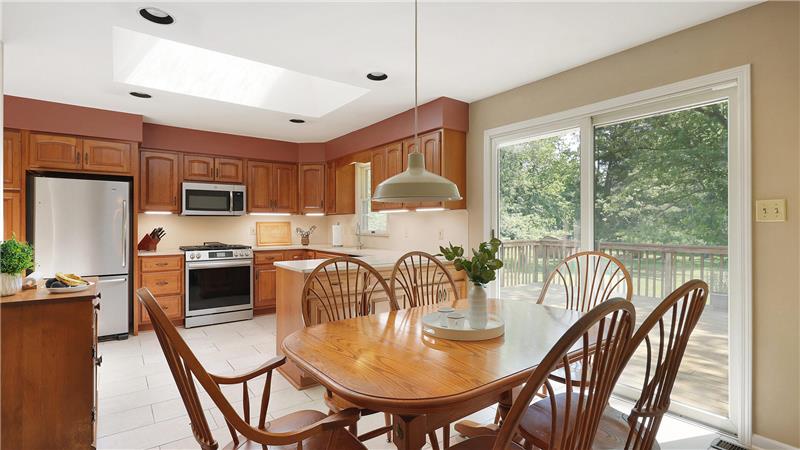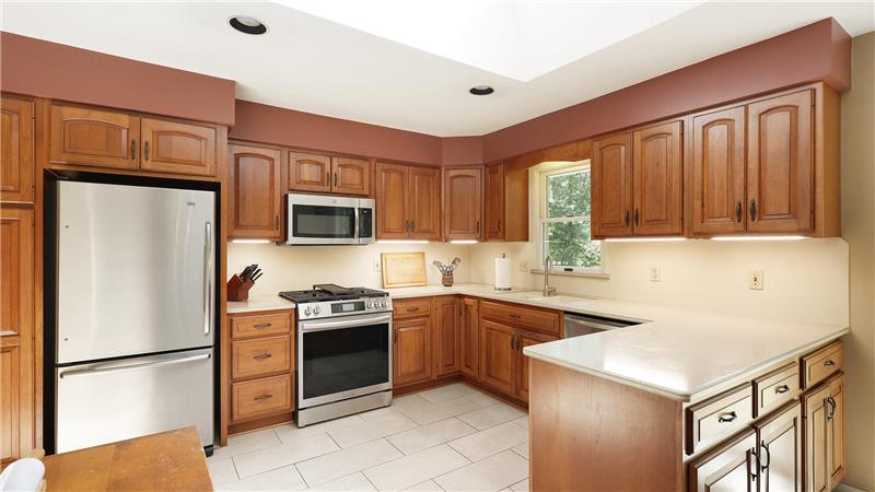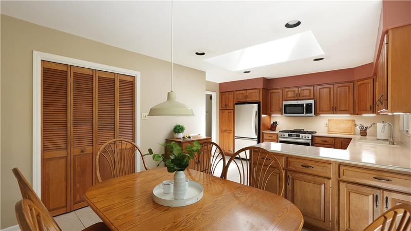 You'll be captivated by the open, airy feel of this expanded 5-Bedroom, 2.5-Bathroom home, perfectly positioned on a spacious corner lot. Bright, sunny living is enhanced by abundant windows, recessed accent lights, and a large kitchen skylight. The sizable eat-in Kitchen features ceramic tile flooring, a newer 5-burner gas oven with air fryer, stainless steel refrigerator, and two pantries.